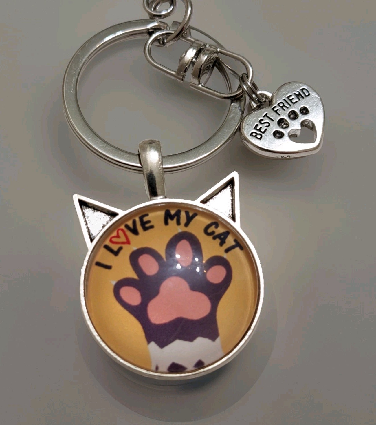 как выглядит I Love My Cat Paw Keychain Keyring Key Chain Ring Cabochon Bag Charm New фото