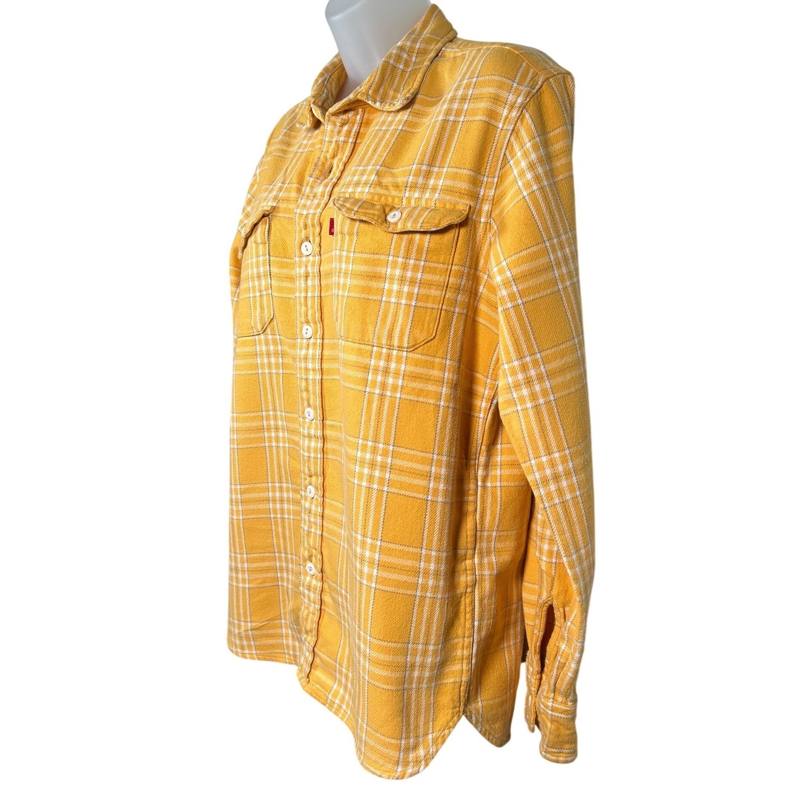 как выглядит Levis Yellow Plaid Cotton Flannel Button Down Shirt Standard Fit Sz Medium фото