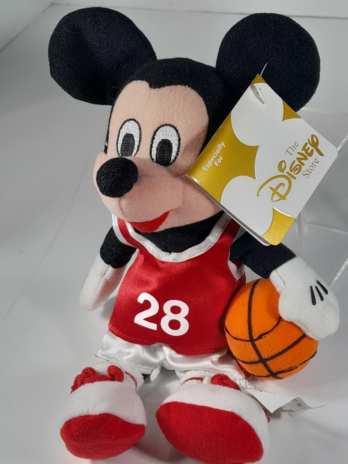 Disney Store Mickey Mouse Basketball Player Mini Bean Bag Plush 28 Red White