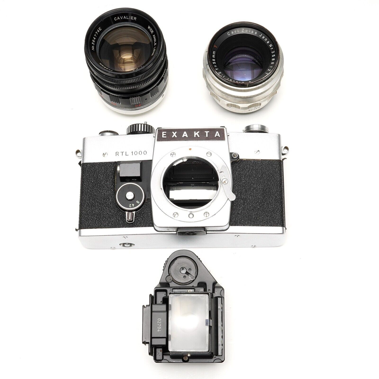 как выглядит Exakta RTL 1000 35mm Film Camera w/ Jena 58mm F/2 Biotar Cavalier 35mm f/2.8 фото