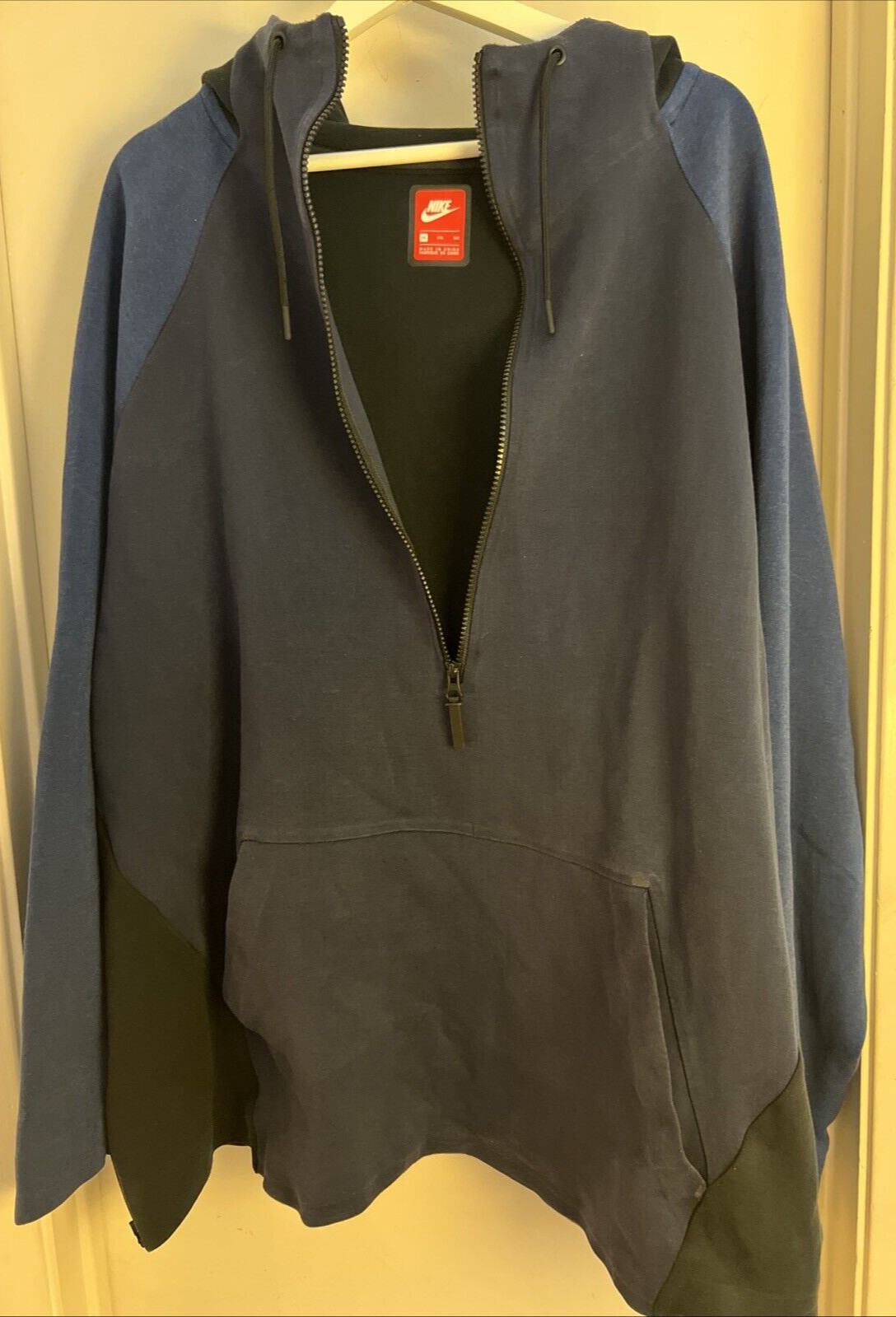 VINTAGE Nike Mens 3XL Blue Sideline Hoodie w half zip, Pockets Side Zippers