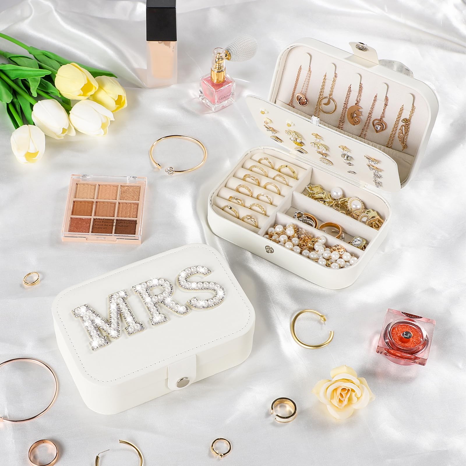 Bride Jewelry Box, MRS Travel Jewelry Box for Bride Portable Jewelry Case, Sm...