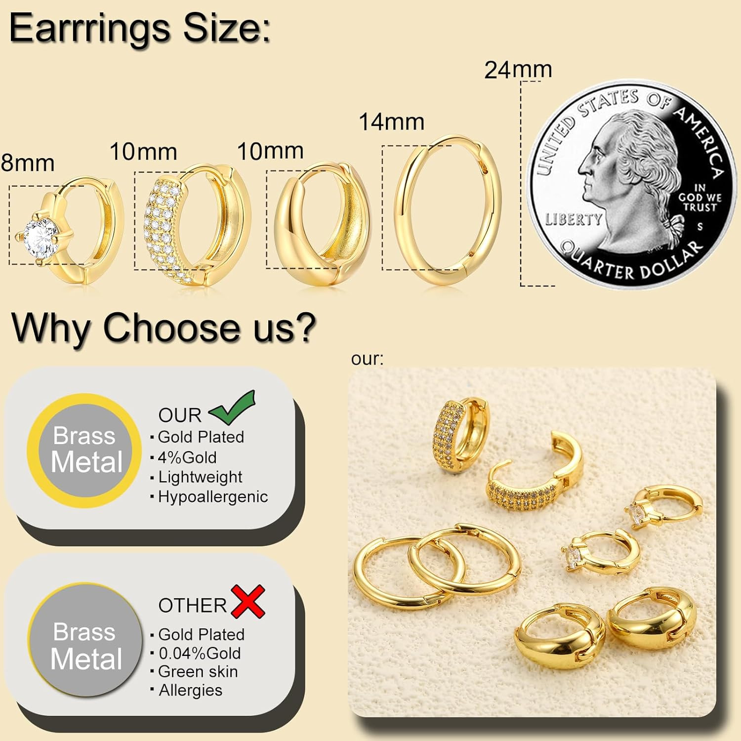 как выглядит Small Gold Hoop Earrings Set for Women, 14K Gold Plated Lightweight Earrings Set фото