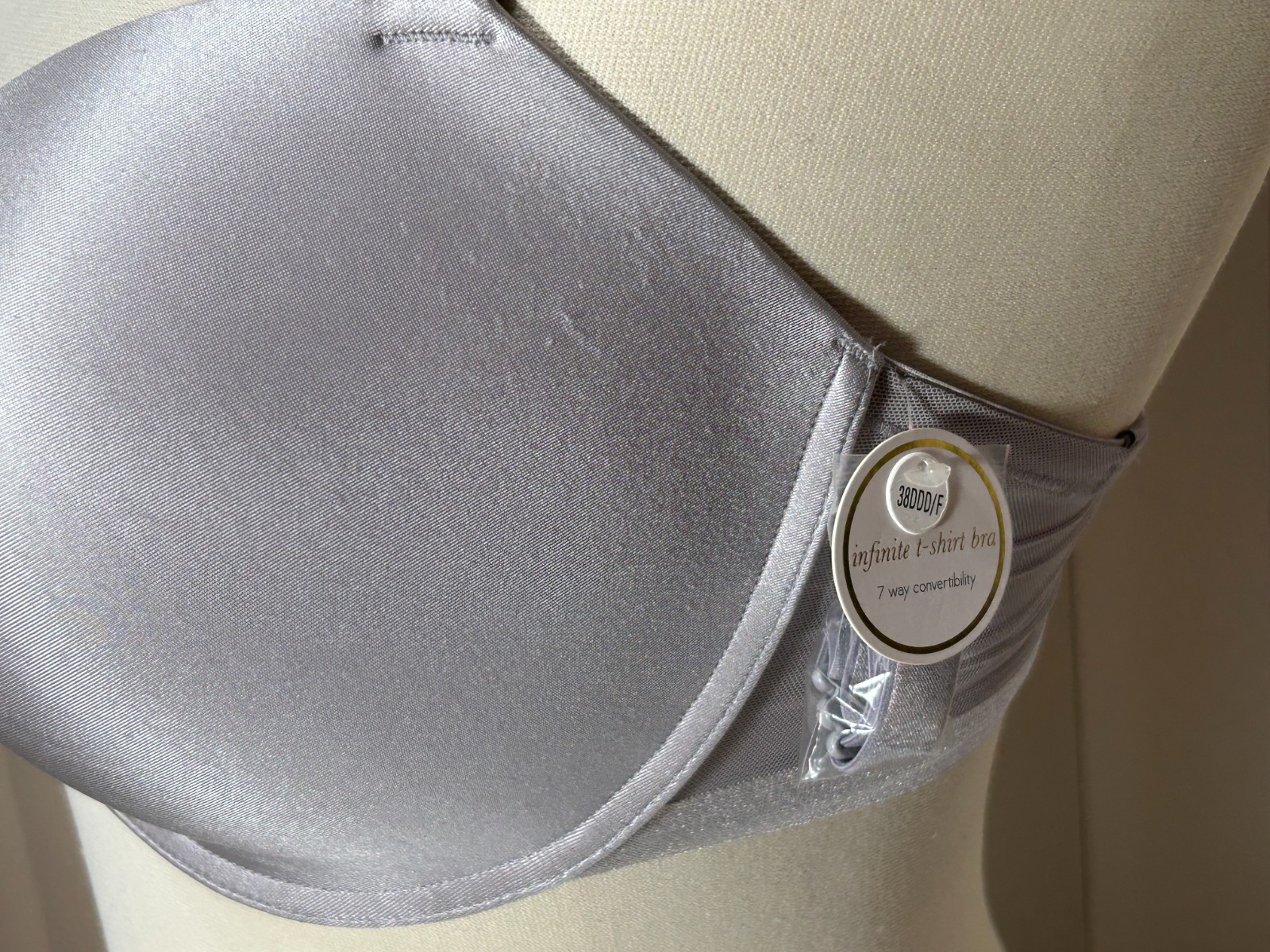 как выглядит Le Mystere Underwire Infinite T Shirt Bra 38DDD/F 7 Way Convertibility Gray фото