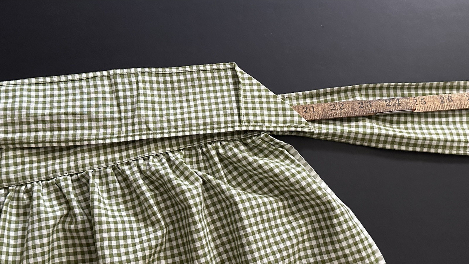 как выглядит Vintage Lg Waist Apron Green Checked Needlework Handmade Boho, Farm, Cottage фото