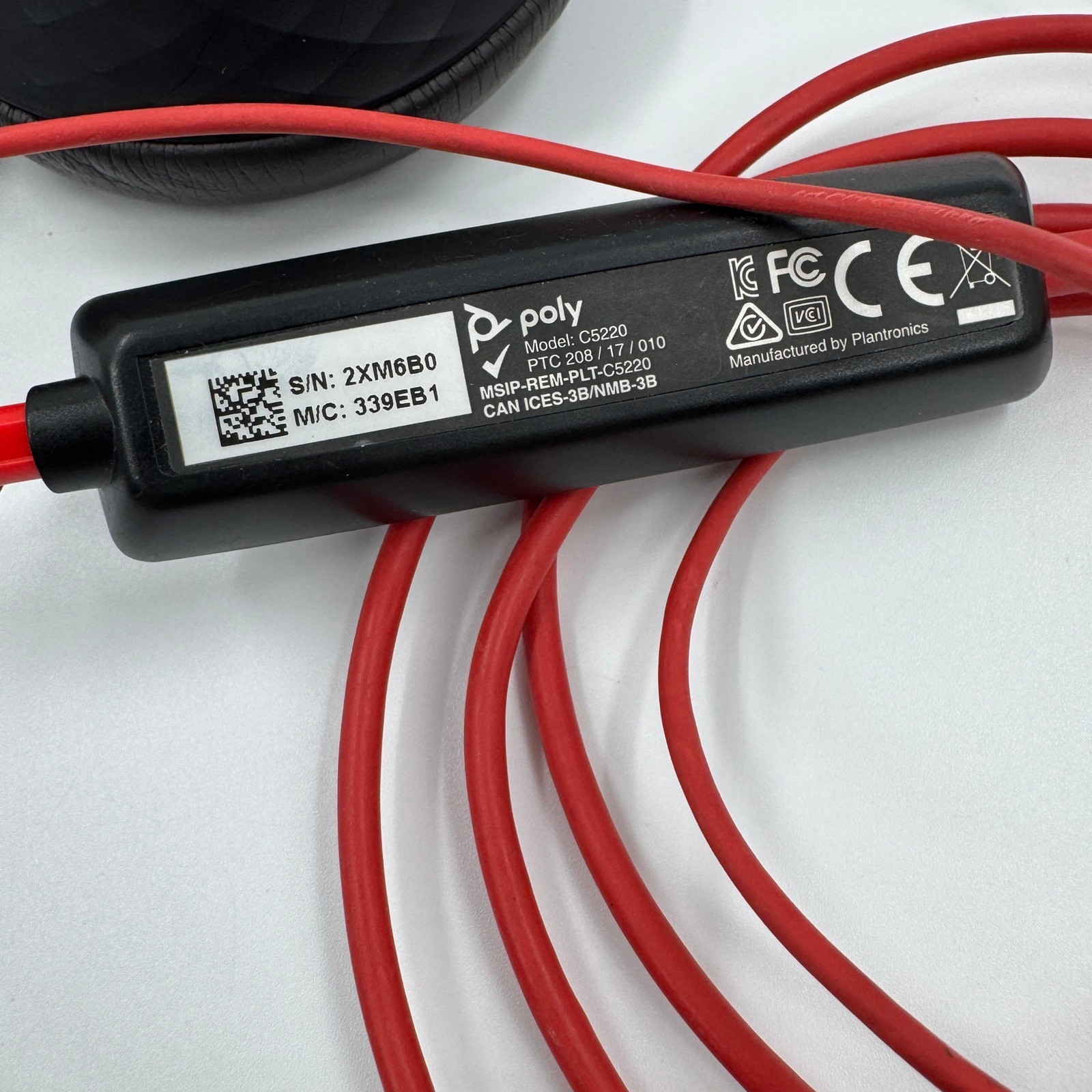 Poly Blackwire C5220 Wired USB-A Stereo Headset Noise Canceling Mic Black Red