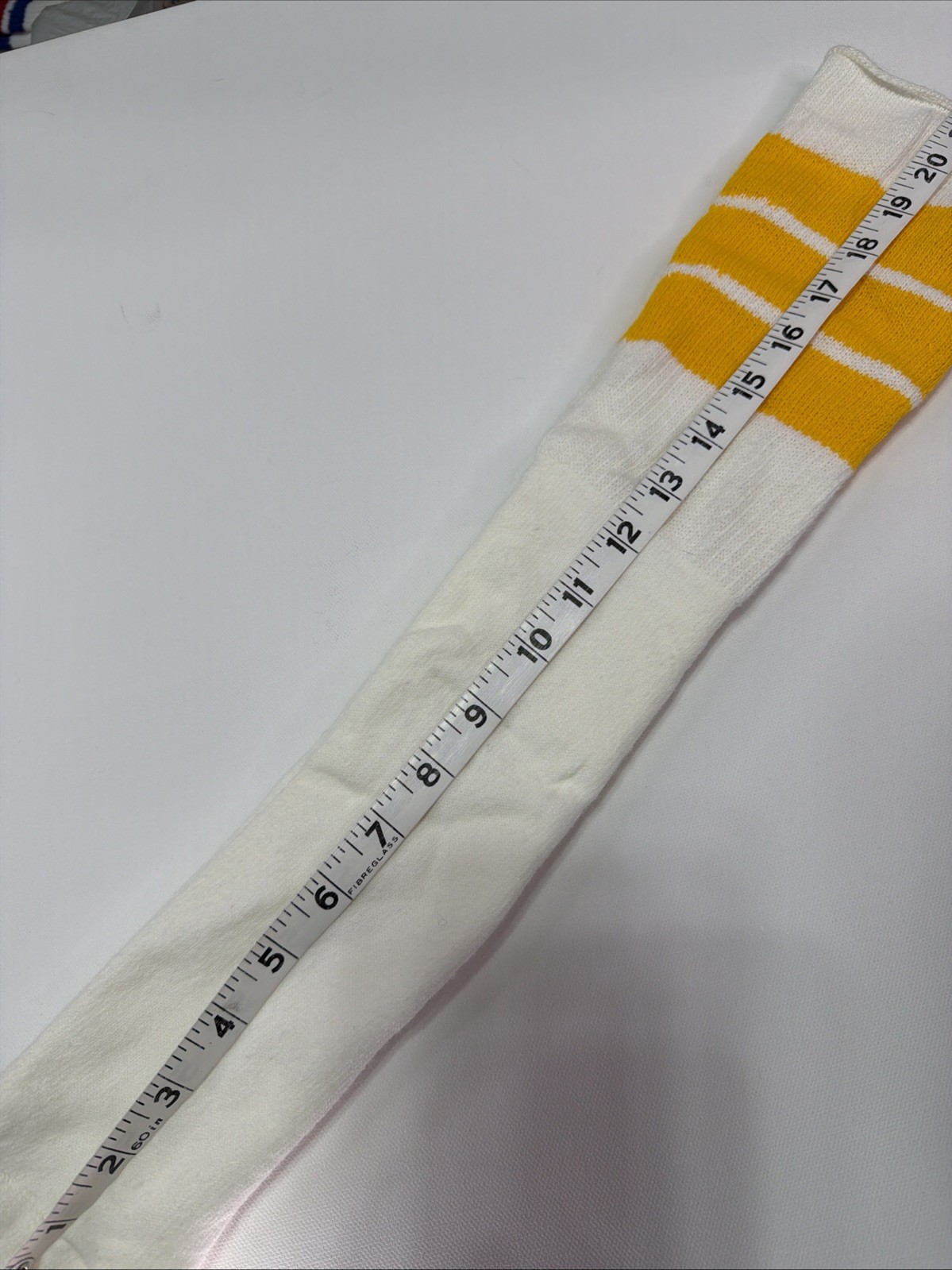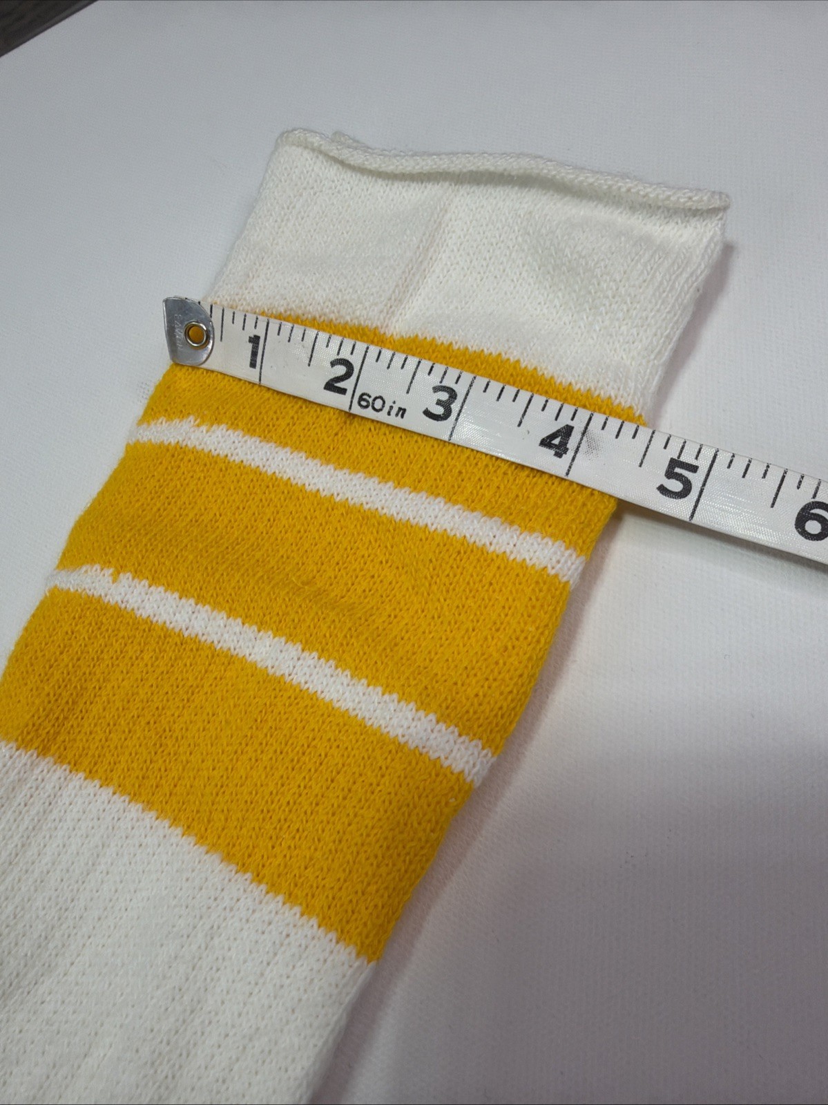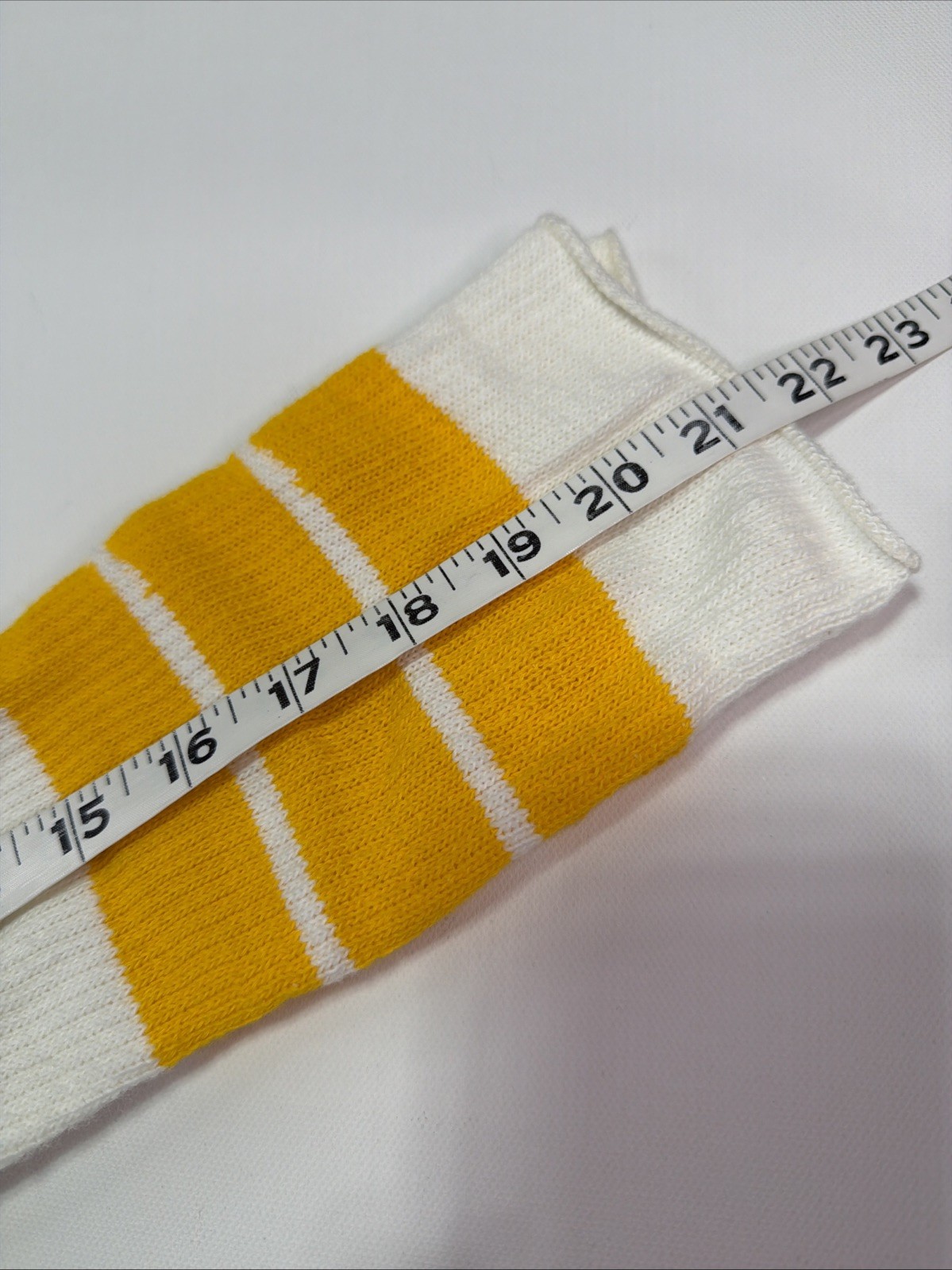 как выглядит Vintage 80s Tube Socks 10-13 21" White Yellow Striped USA Acrylic фото
