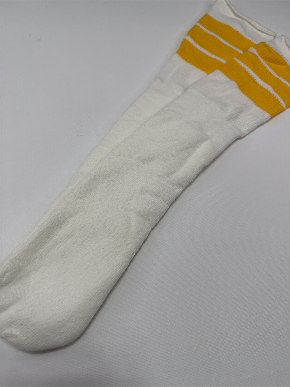 Vintage 80's Tube Socks 10-13 21 White Yellow Striped USA Acrylic