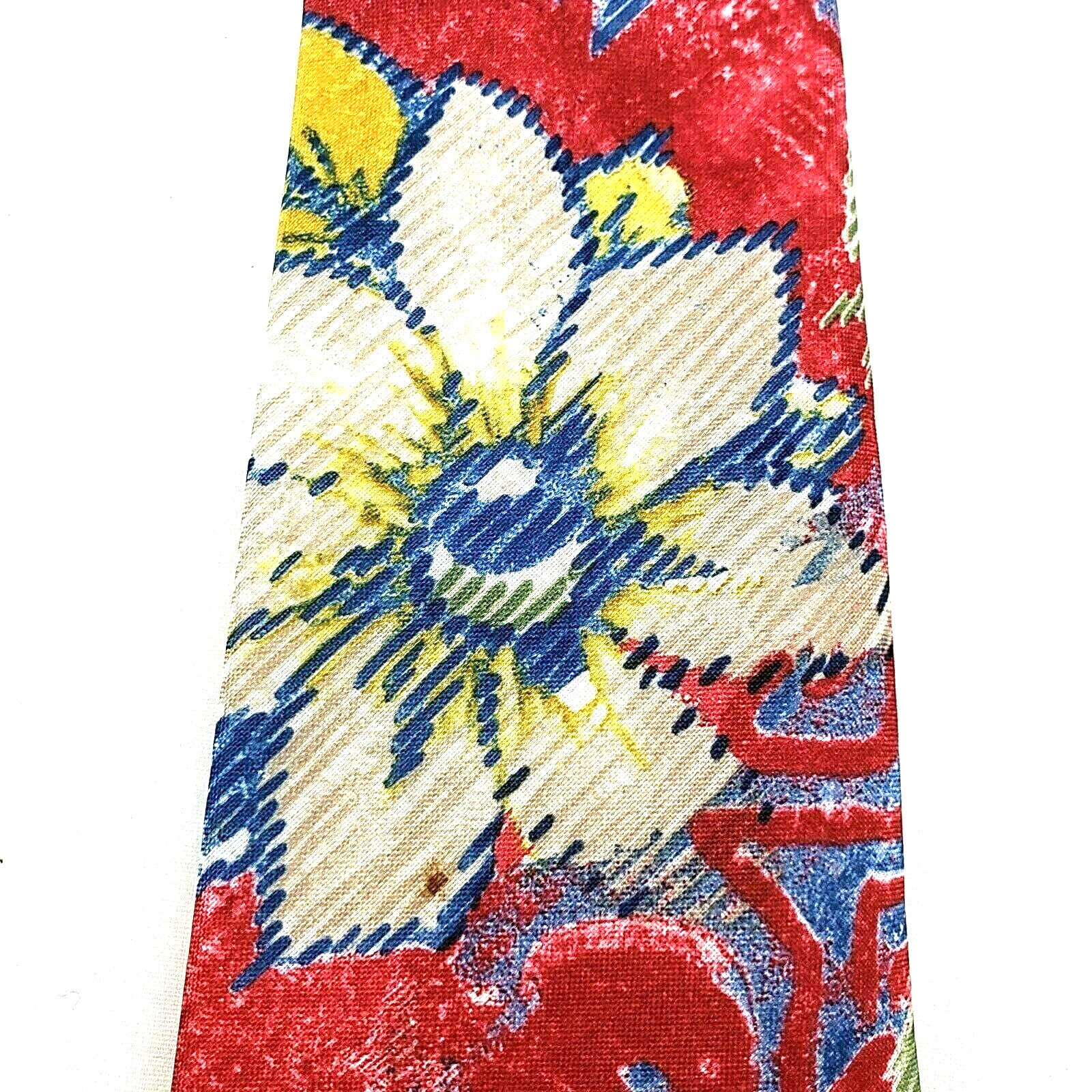 Italian Neck Tie 100 Silk Abstract Floral Design 56.5 x 3.5 Handmade Multi