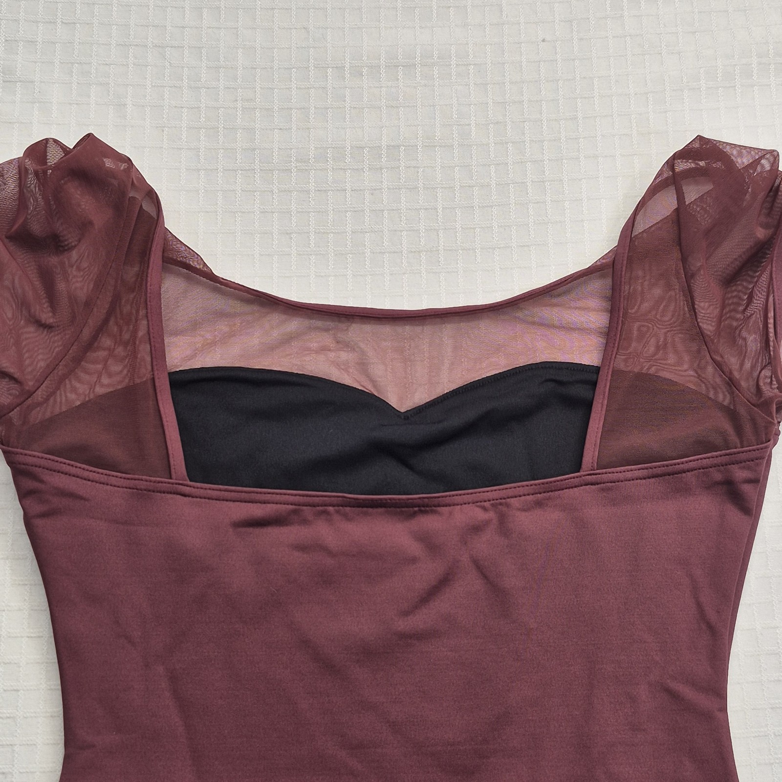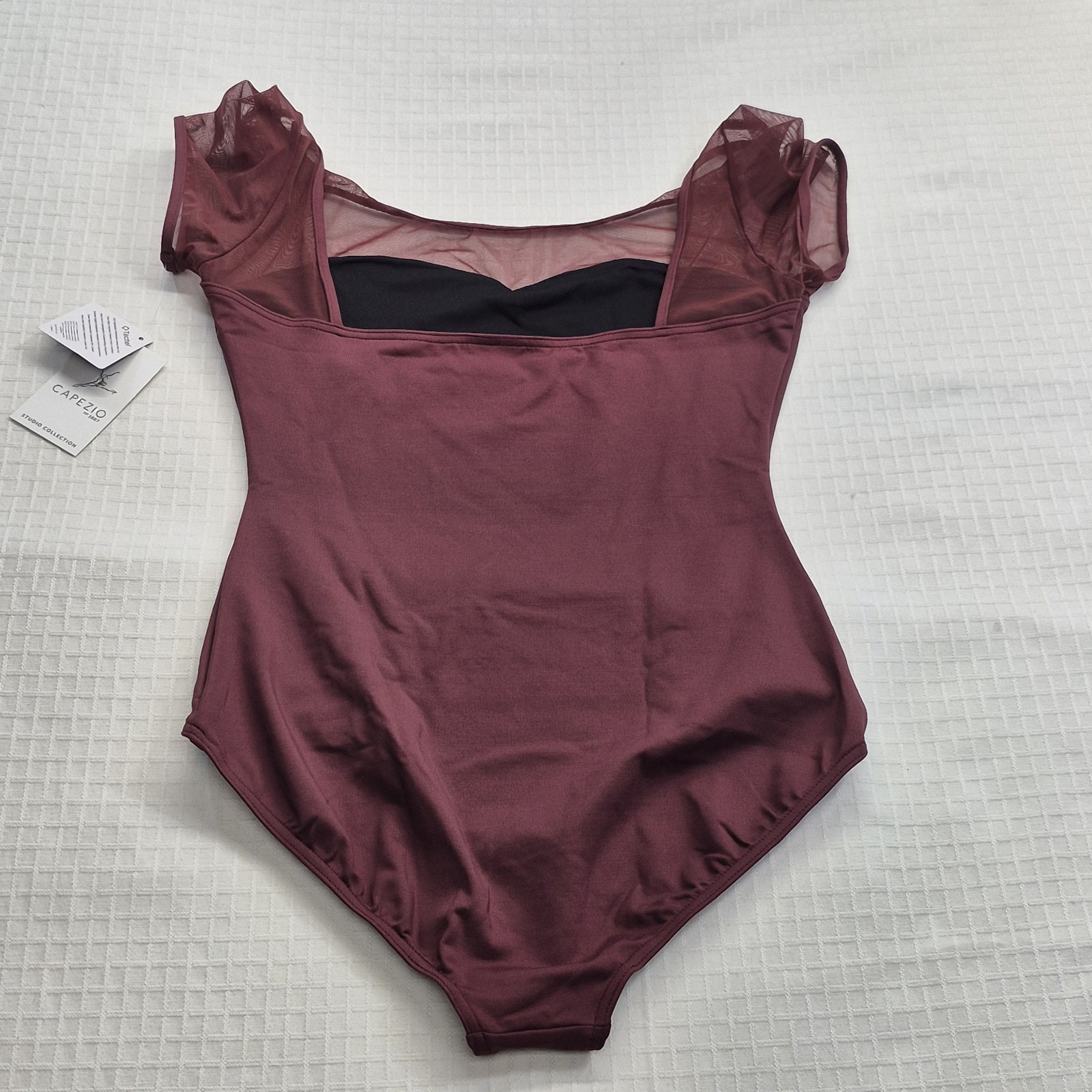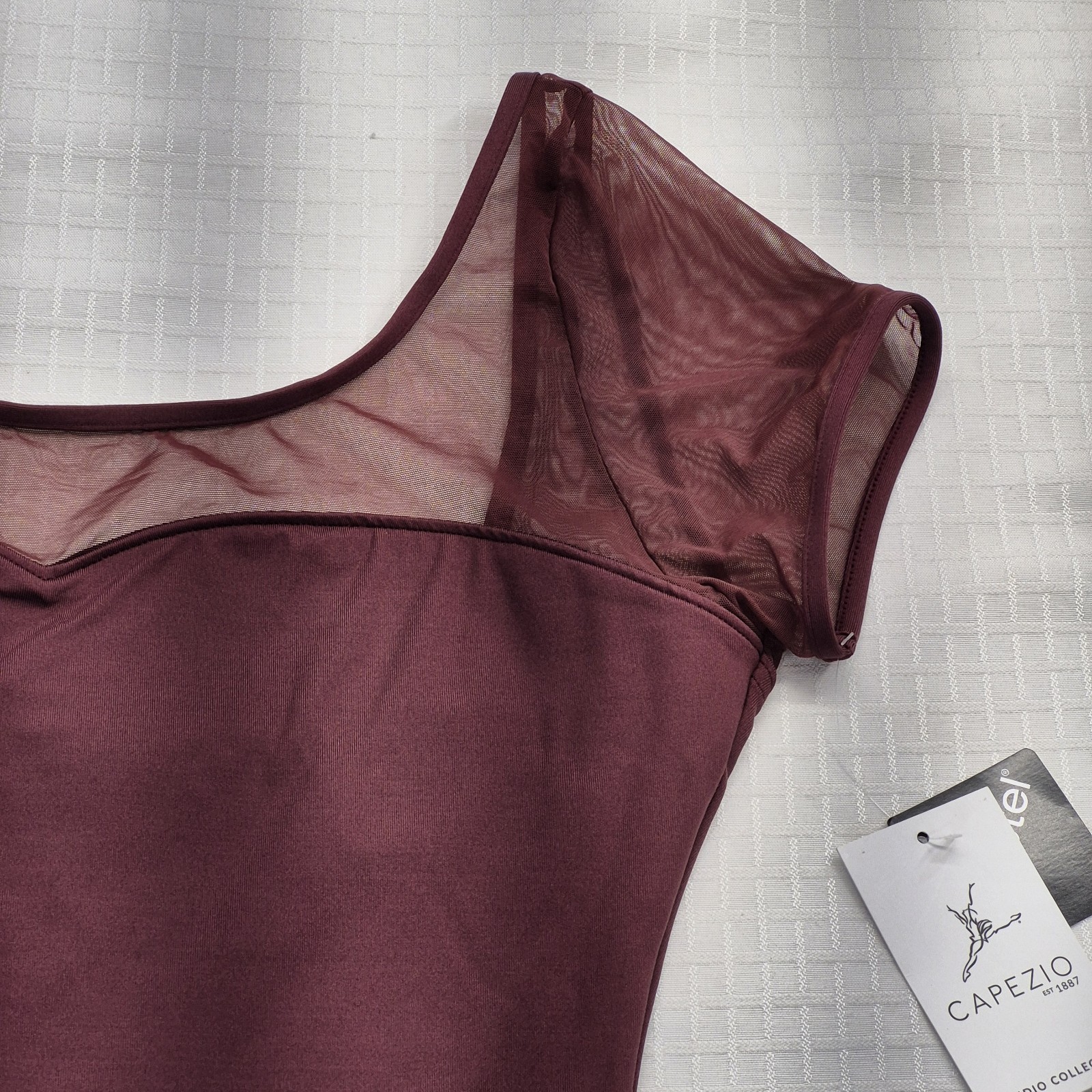Womens Capezio Bodysuit MESH YOLK Short Sleeve Leotard Burgundy Maroon Dance