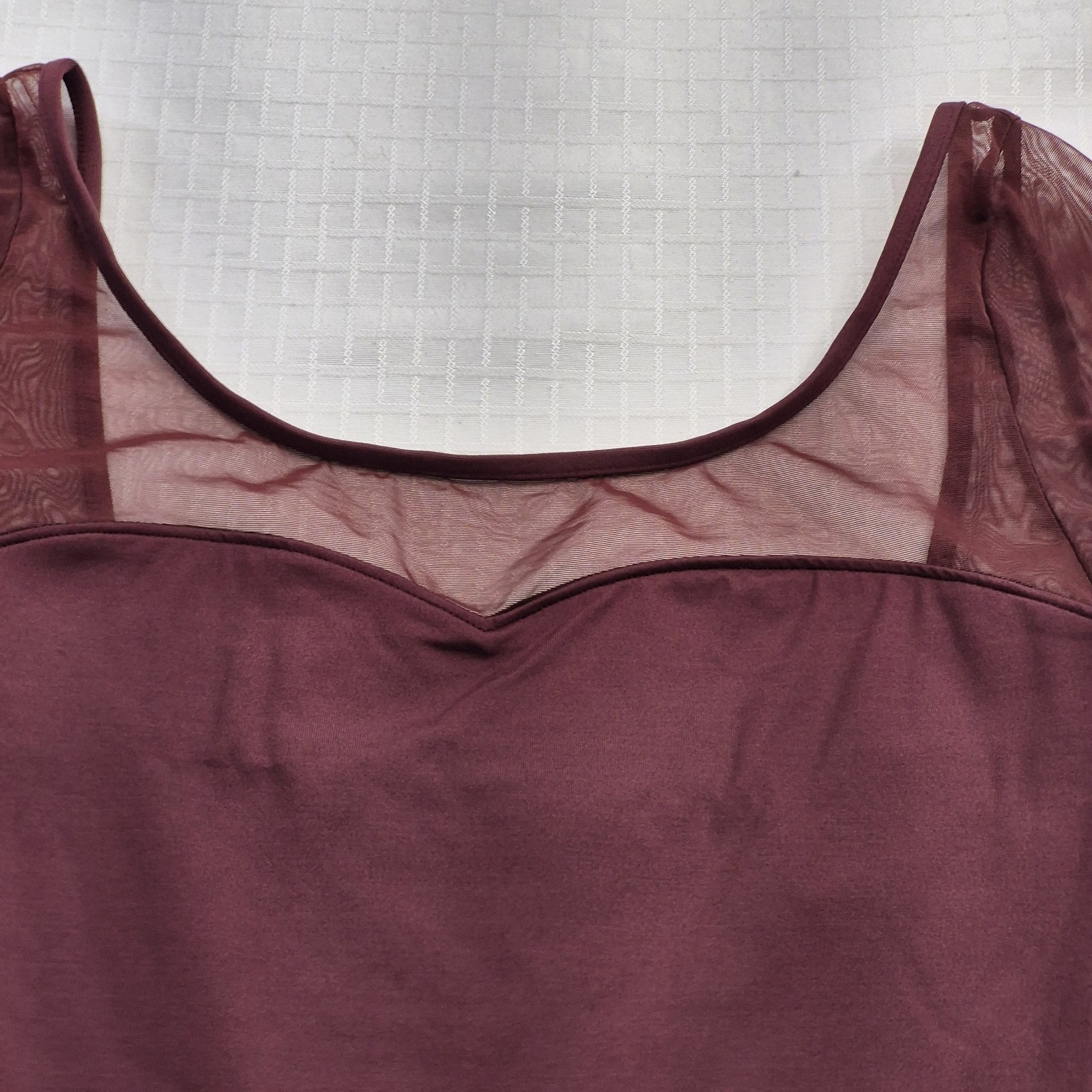 как выглядит Womens Capezio Bodysuit MESH YOLK Short Sleeve Leotard Burgundy Maroon Dance фото