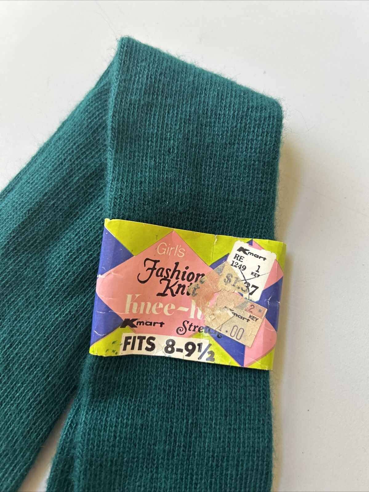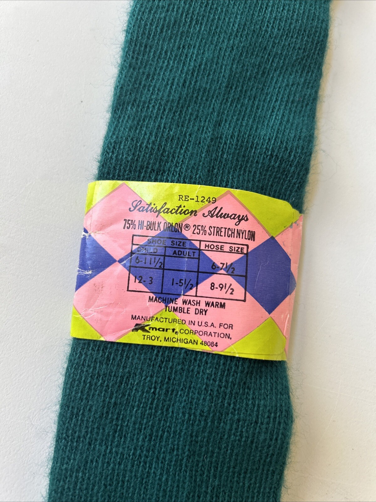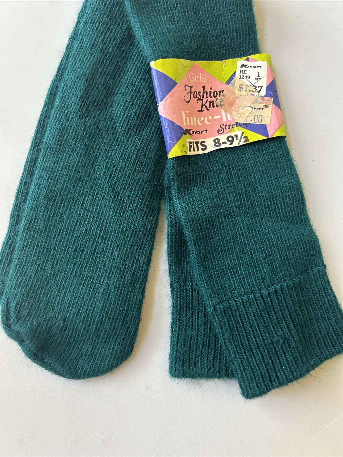 VTG Socks Hosiery 80s Cable Knit Green NOS 8-9.5 Shoe 90s USA Stocking School