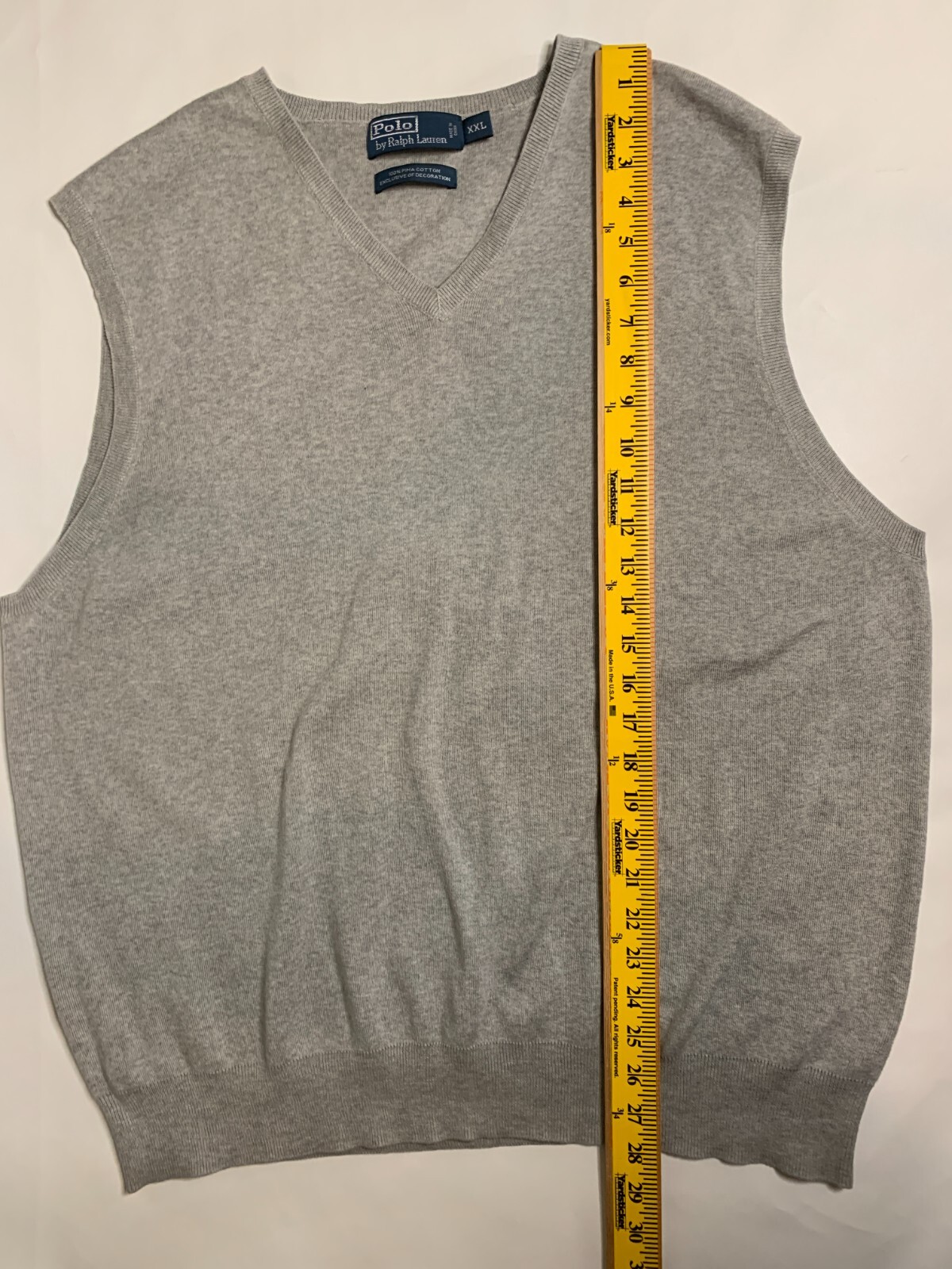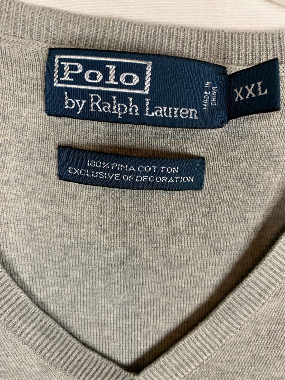 как выглядит POLO RALPH LAUREN Mens Sweater Vest Size 2XL Gray V-Neck Pima Cotton Pullover фото