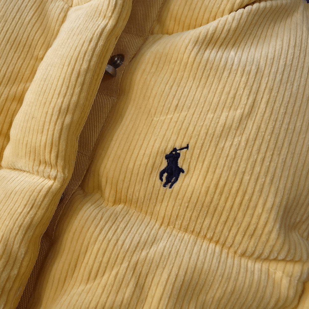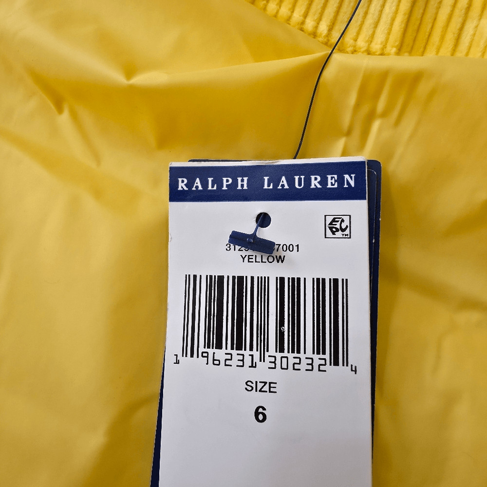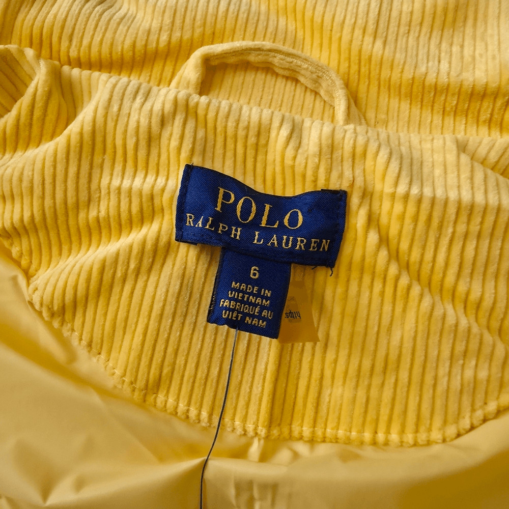 Polo Ralph Lauren Corduroy Down Puffer Vest Pony Logo Yellow Blue Boys Size 6