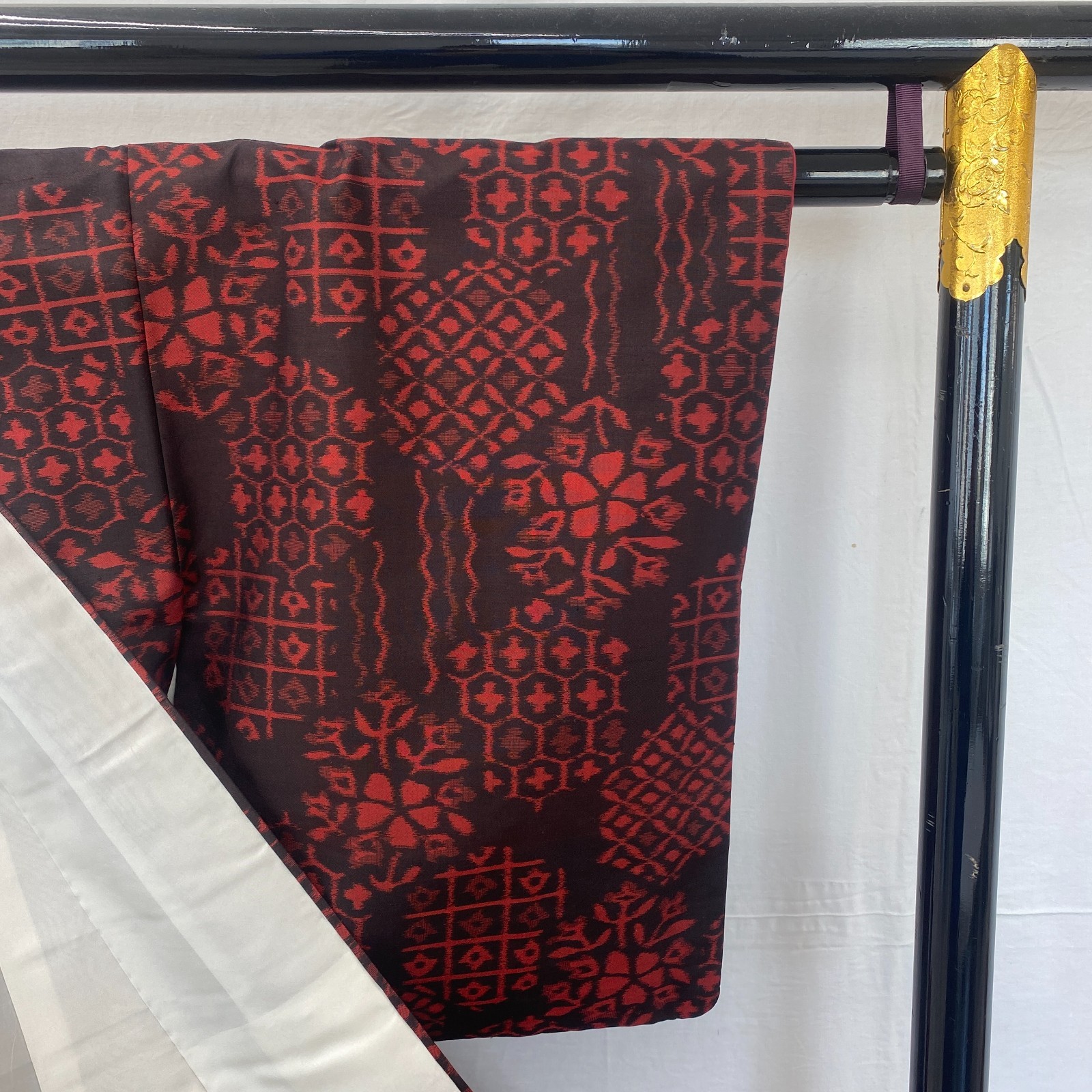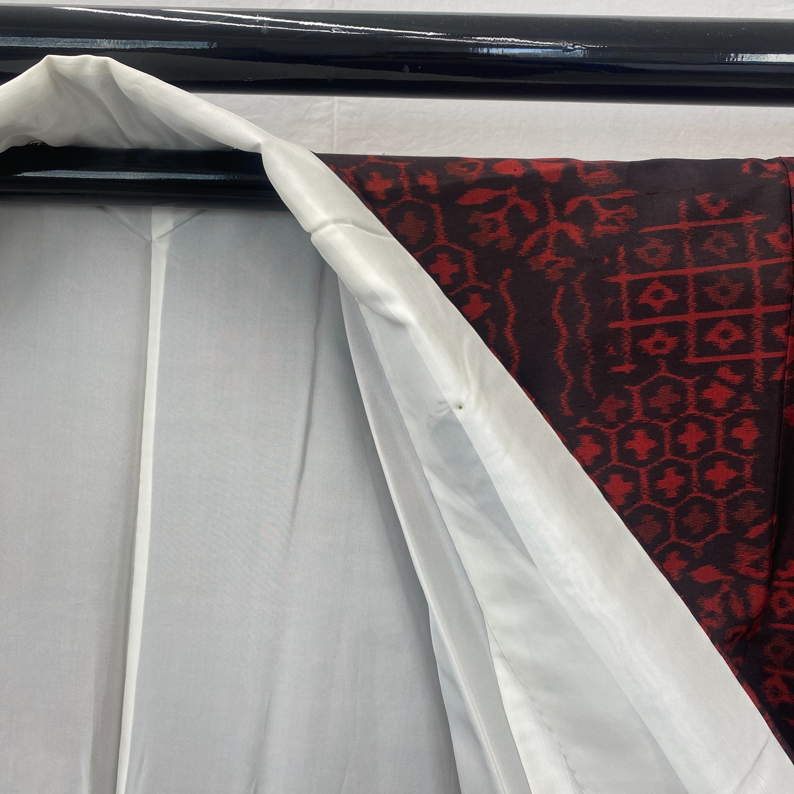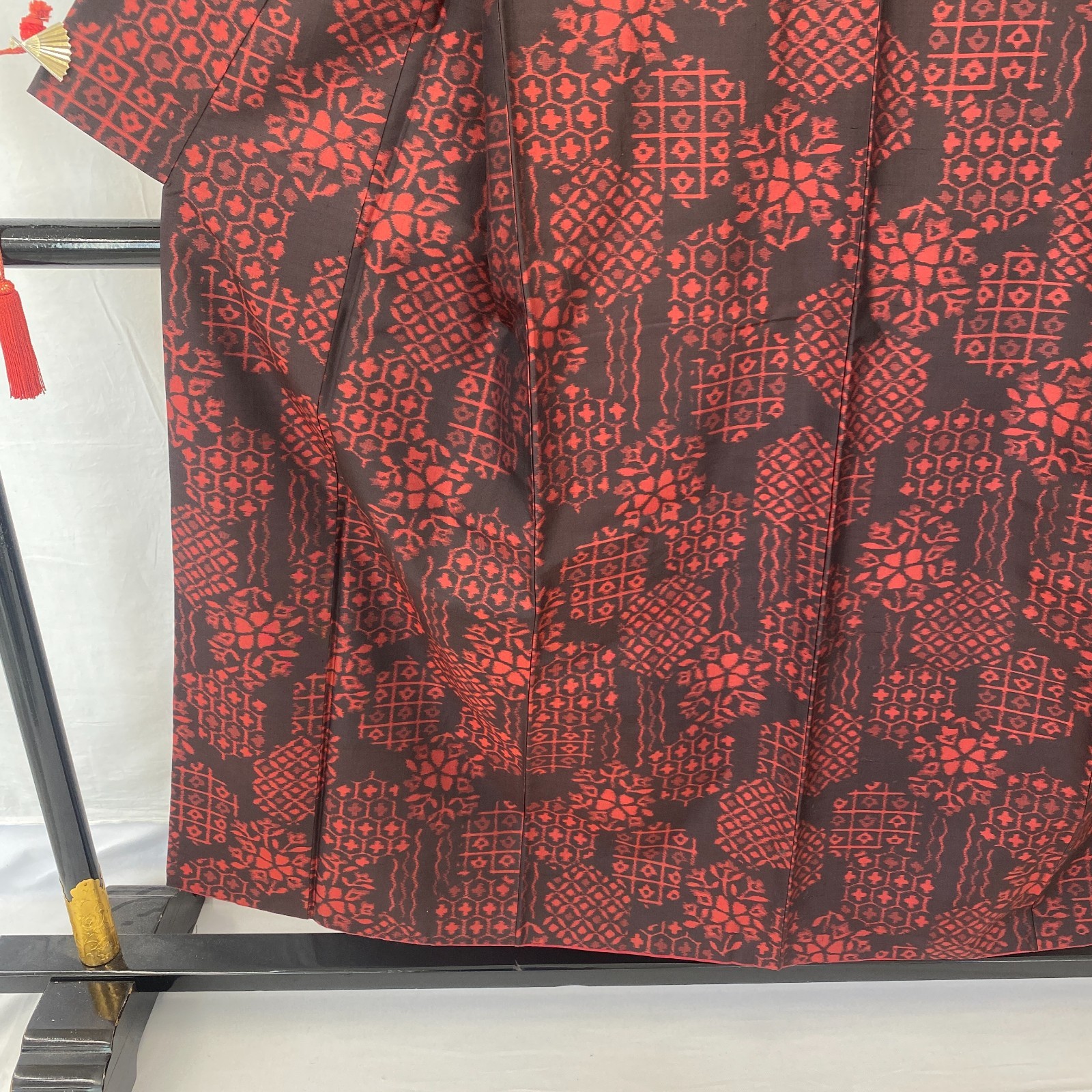 Japanese Vintage Kimono Silk Black Oshima Traditional Authentic Length 59 in