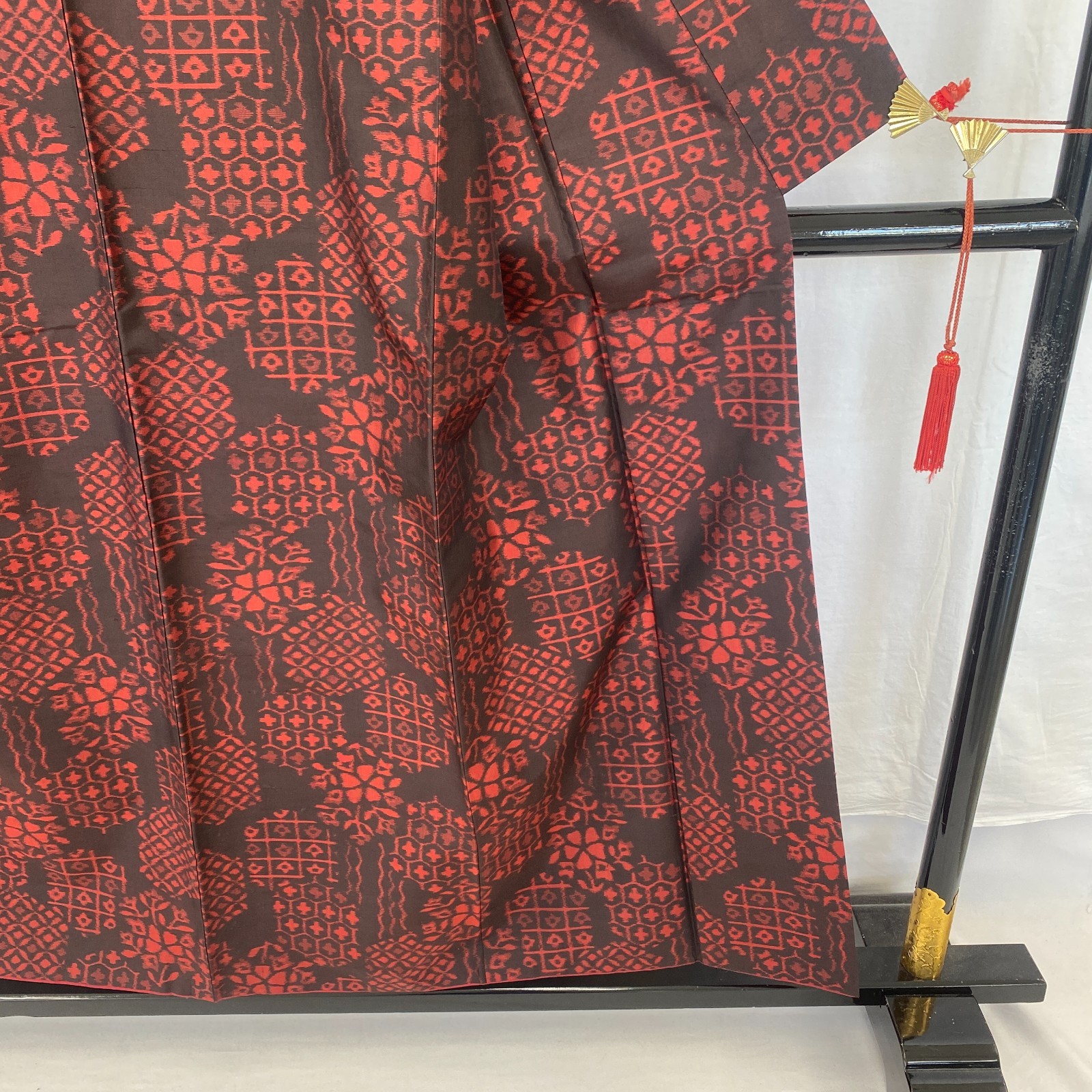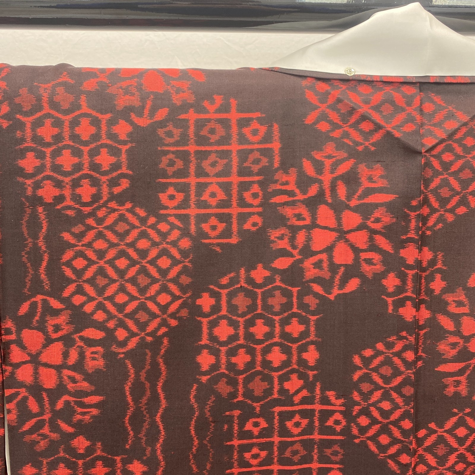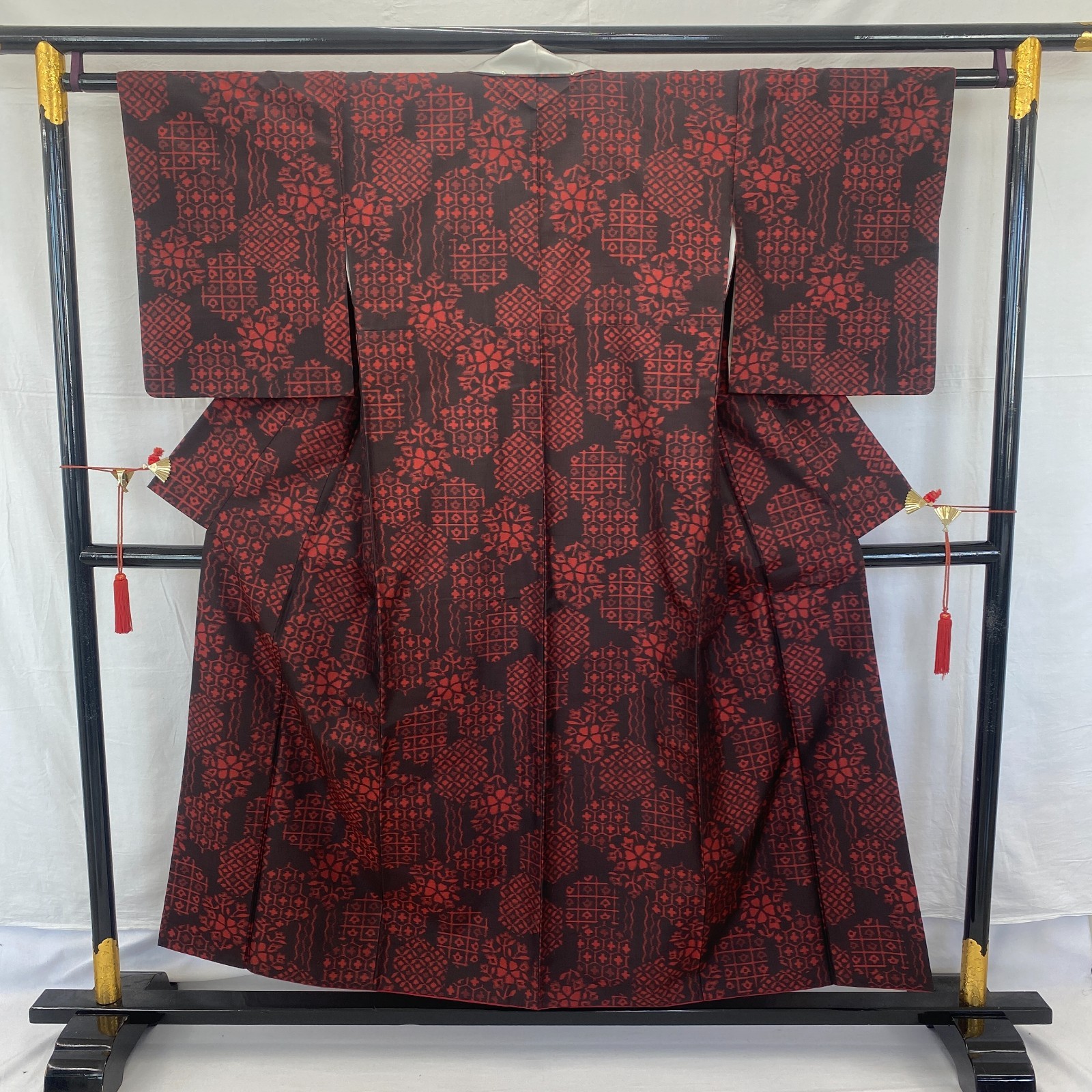 Japanese Vintage Kimono Silk Black Oshima Traditional Authentic Length 59 in
