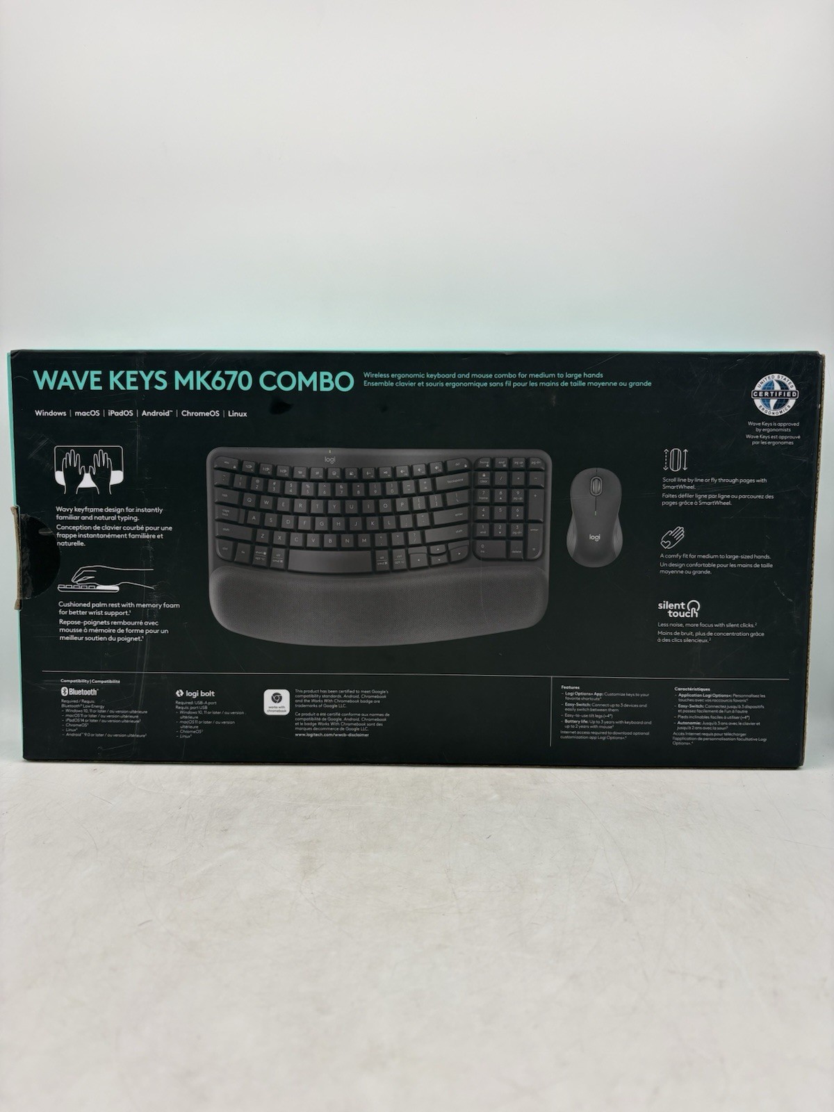 Logitech Wave Keys MK670 Combo, Wireless Ergonomic Keyboard Wireless Mouse