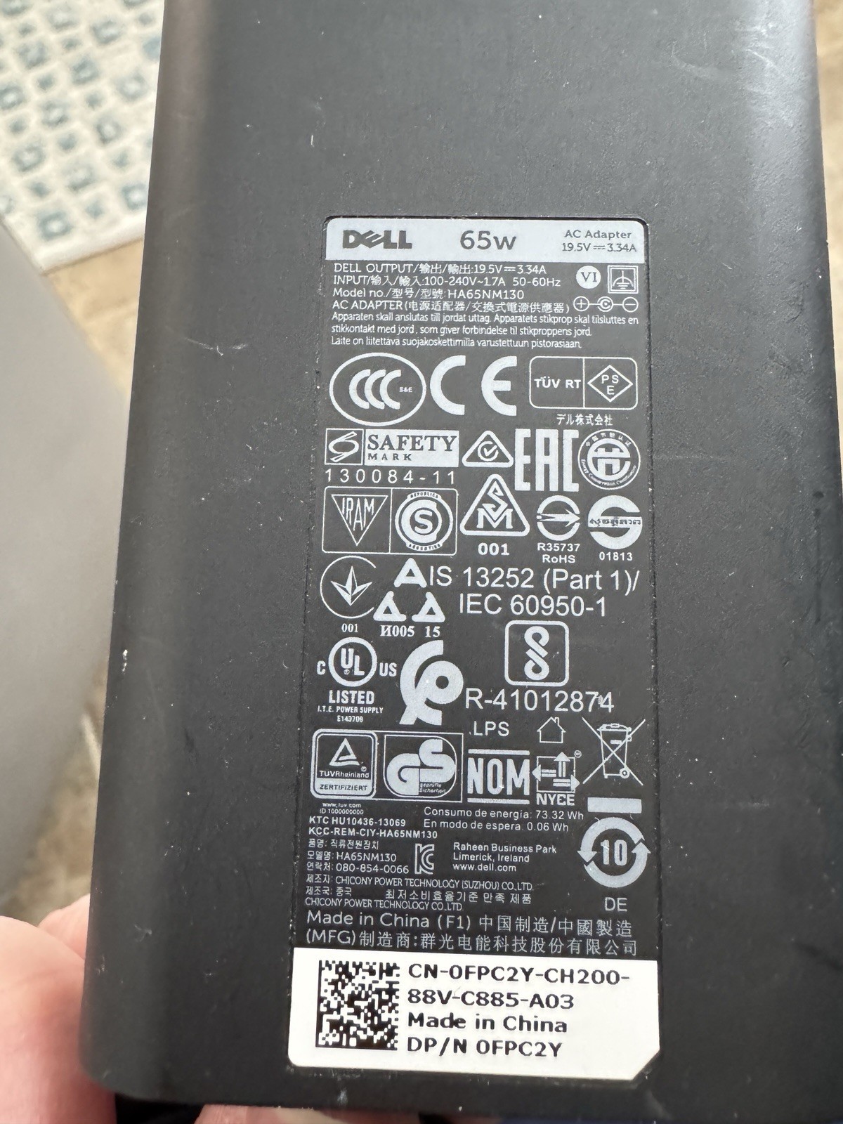 как выглядит Dell Latitude Laptop AC Adapter Charger Power Cord 65W, US фото