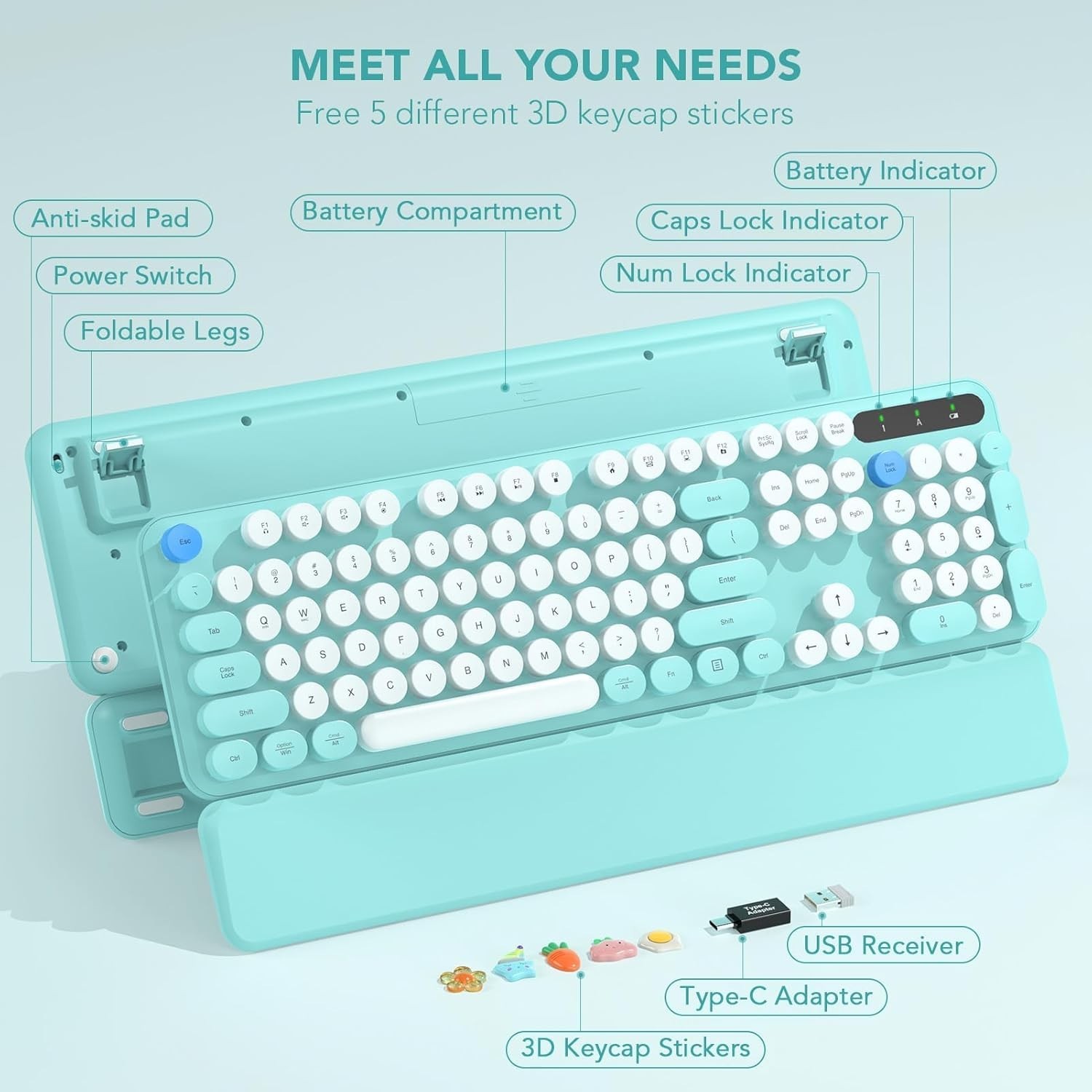 Wireless Keyboard and Mouse Combo Colorful Keyboard with Round Keycaps NEW