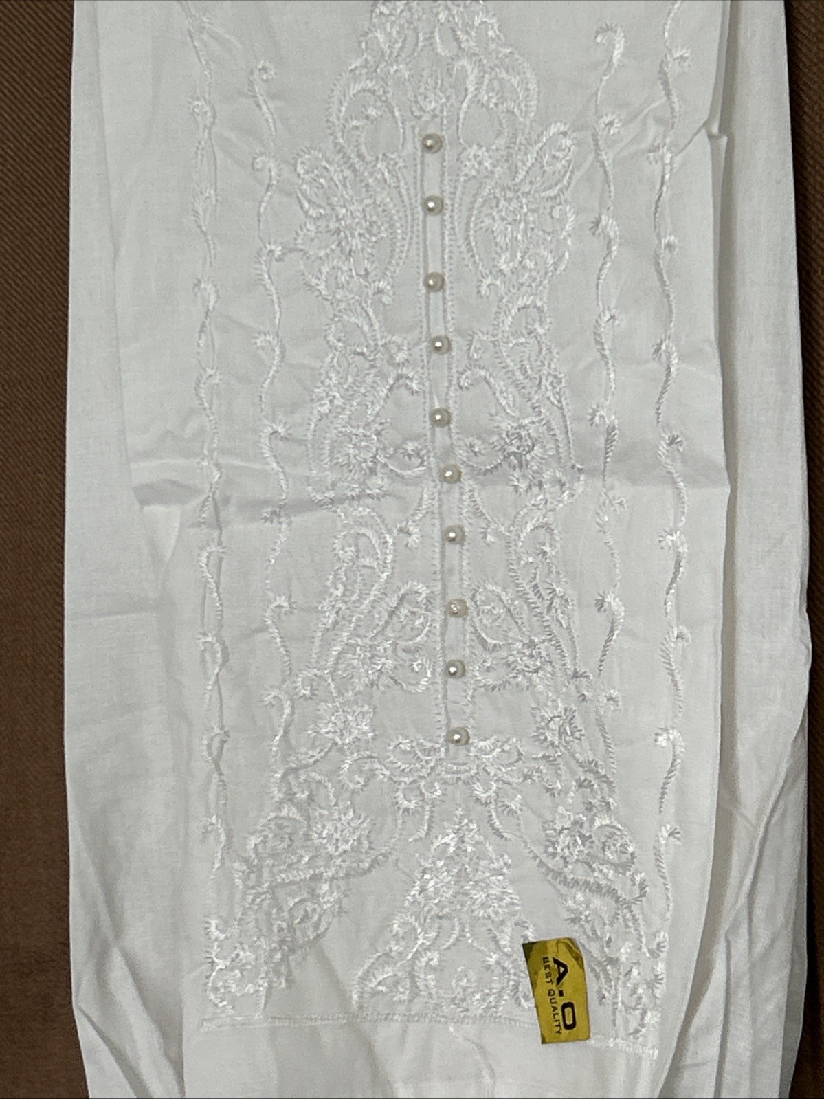 Pakistani Emb Cotton Trouser Size-L Color-white L-37in Bottom-9in Hip-22