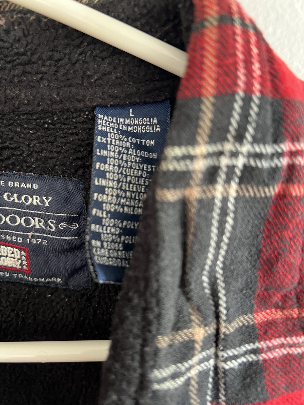 Vtg Faded Glory Shirt Jacket plaid Flannel Fleece Quilted Outdoor Size Large