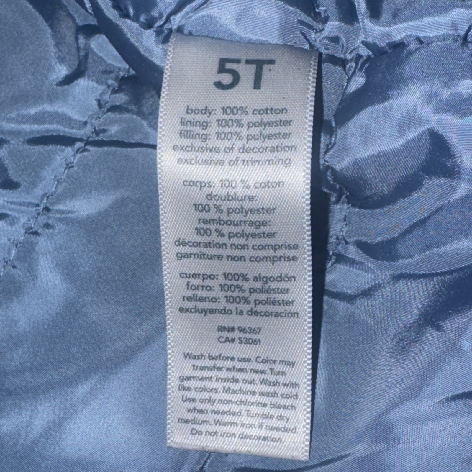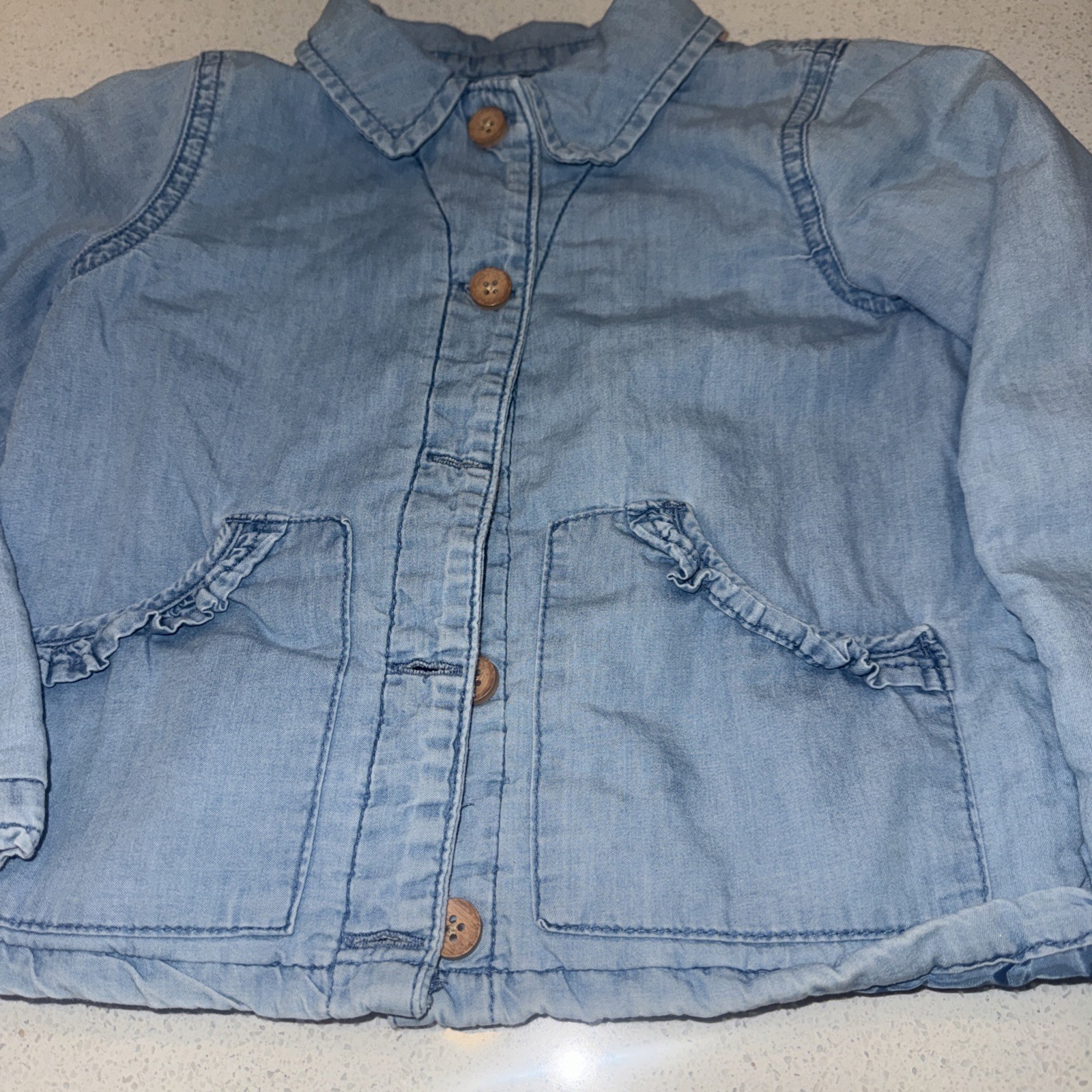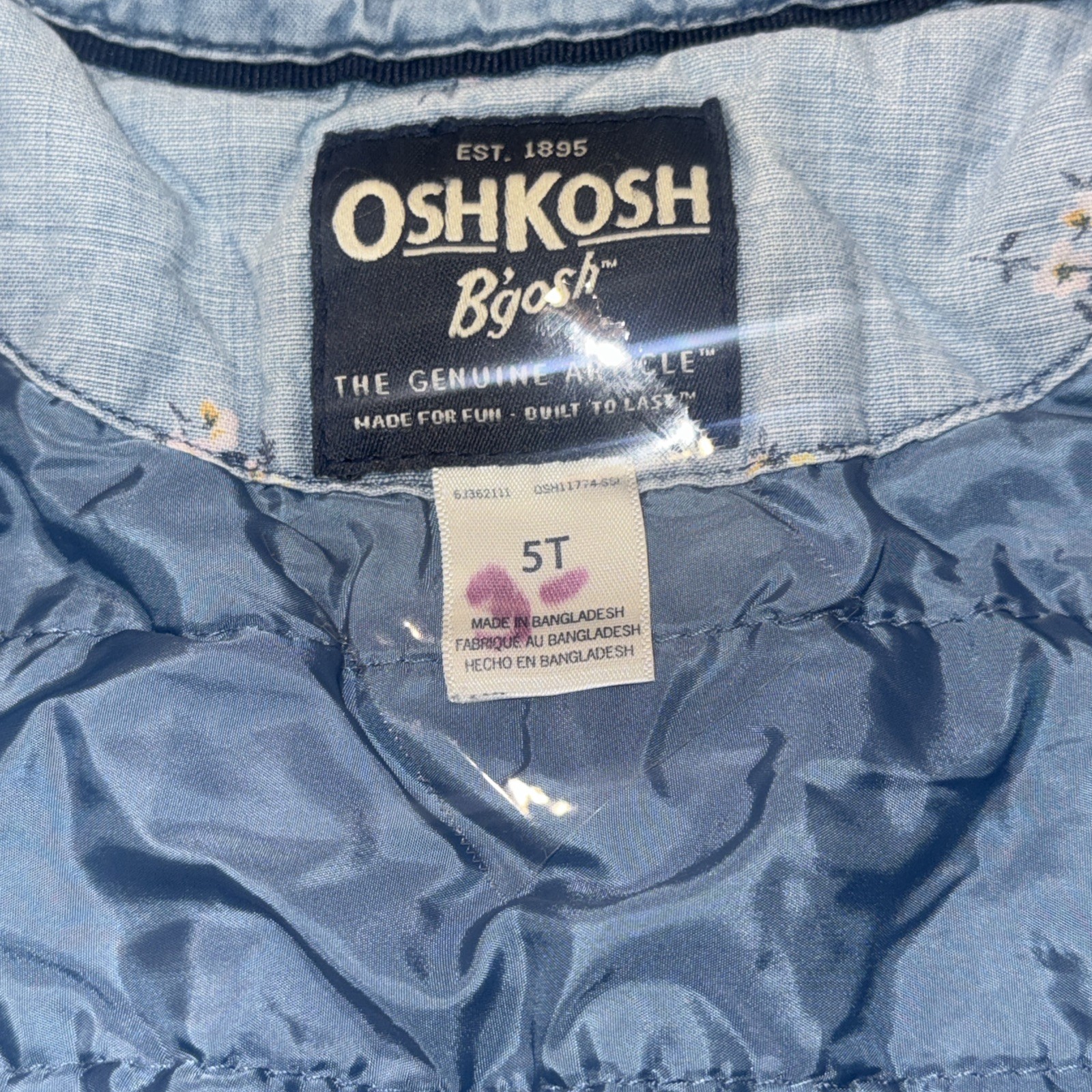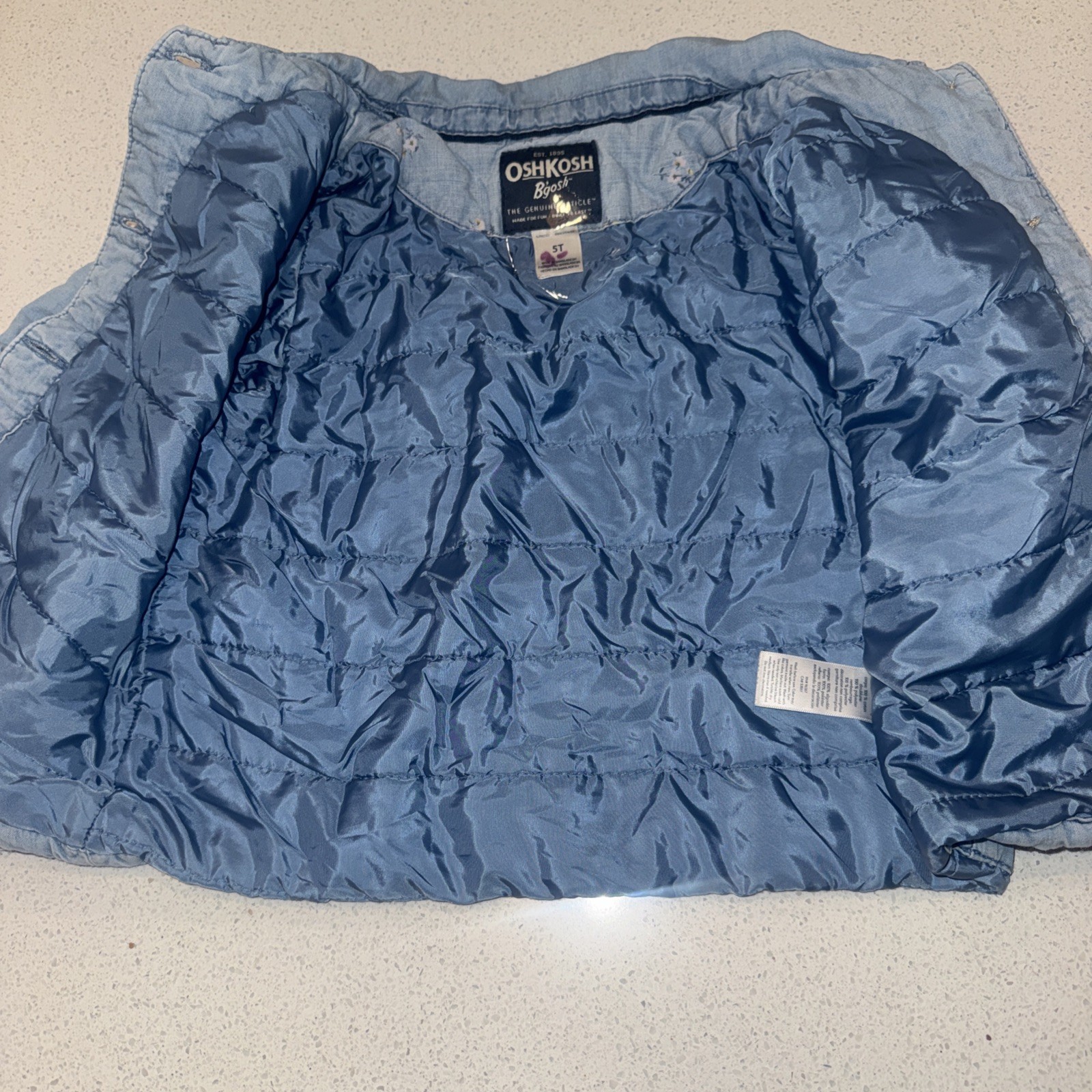 OshKosh B gosh Blue Denim Puffer Lined Button Up Jacket 100 Cotton Size 5T A2