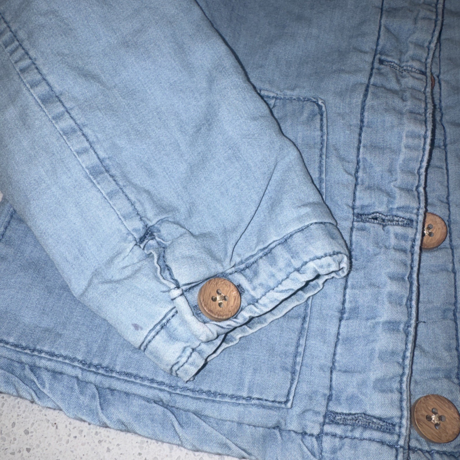 как выглядит OshKosh B gosh Blue Denim Puffer Lined Button Up Jacket 100 Cotton Size 5T A2 фото