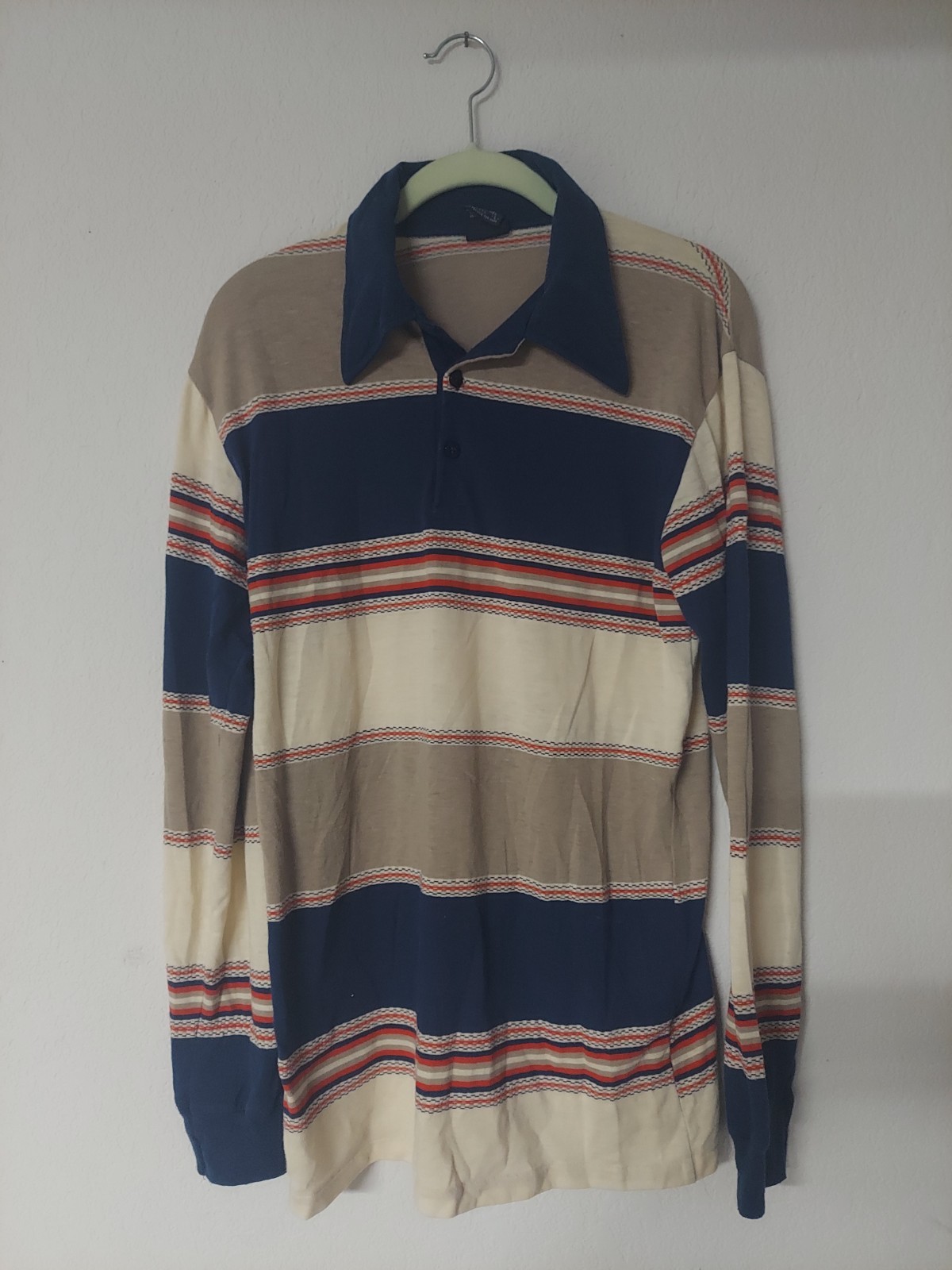 Vintage Casual Club Men's 70s Retro Leisure Longsleeve Pullover Shirt - Large