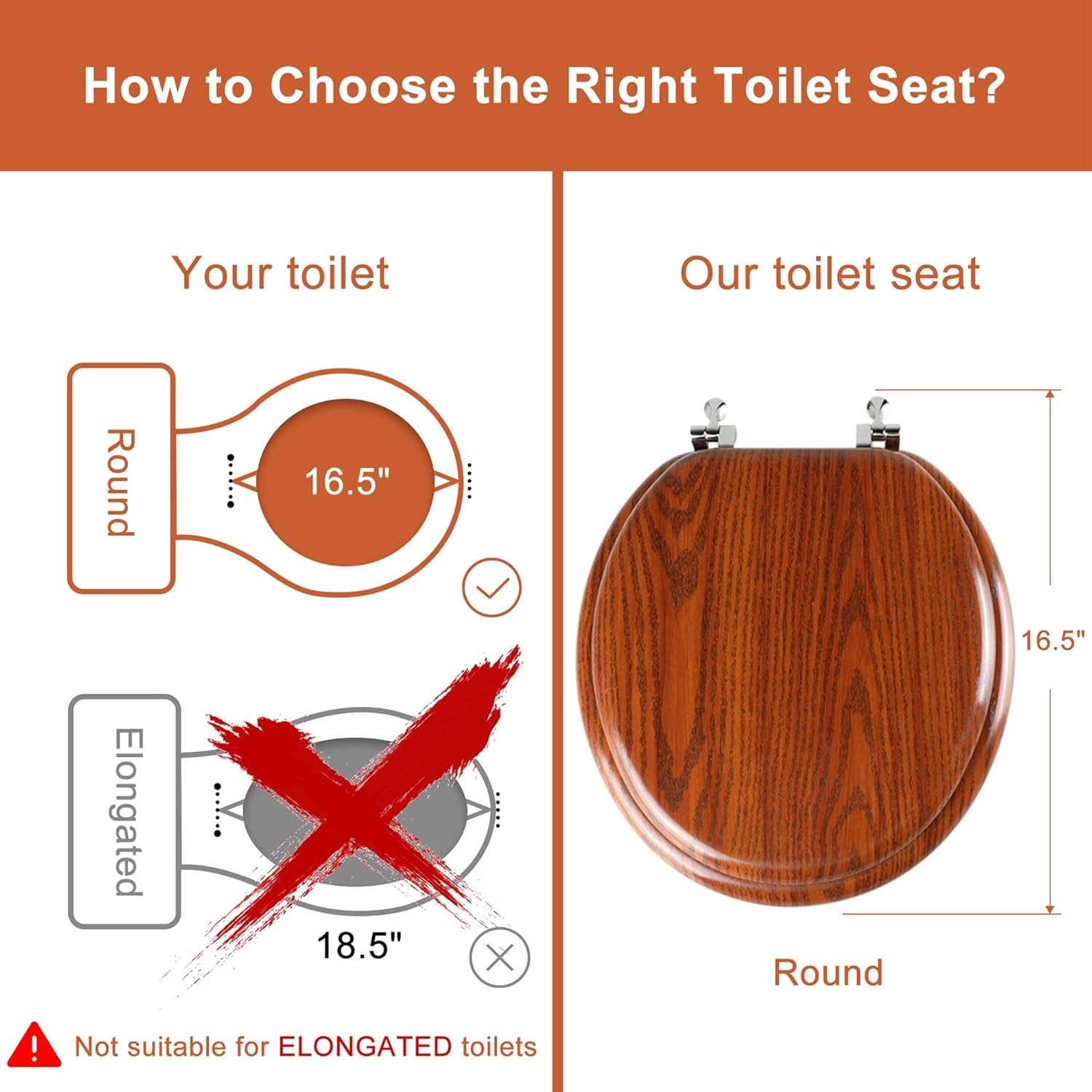 Round Toilet Seat Molded Wood Toilet Seat with Zinc Alloy Hinges, Easy to Ins...