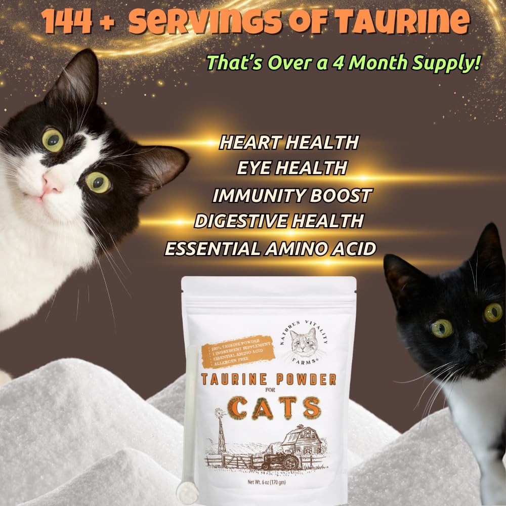 Taurine Powder for Cats - 500mg Supplement for Kittens Adults - 144 Servings