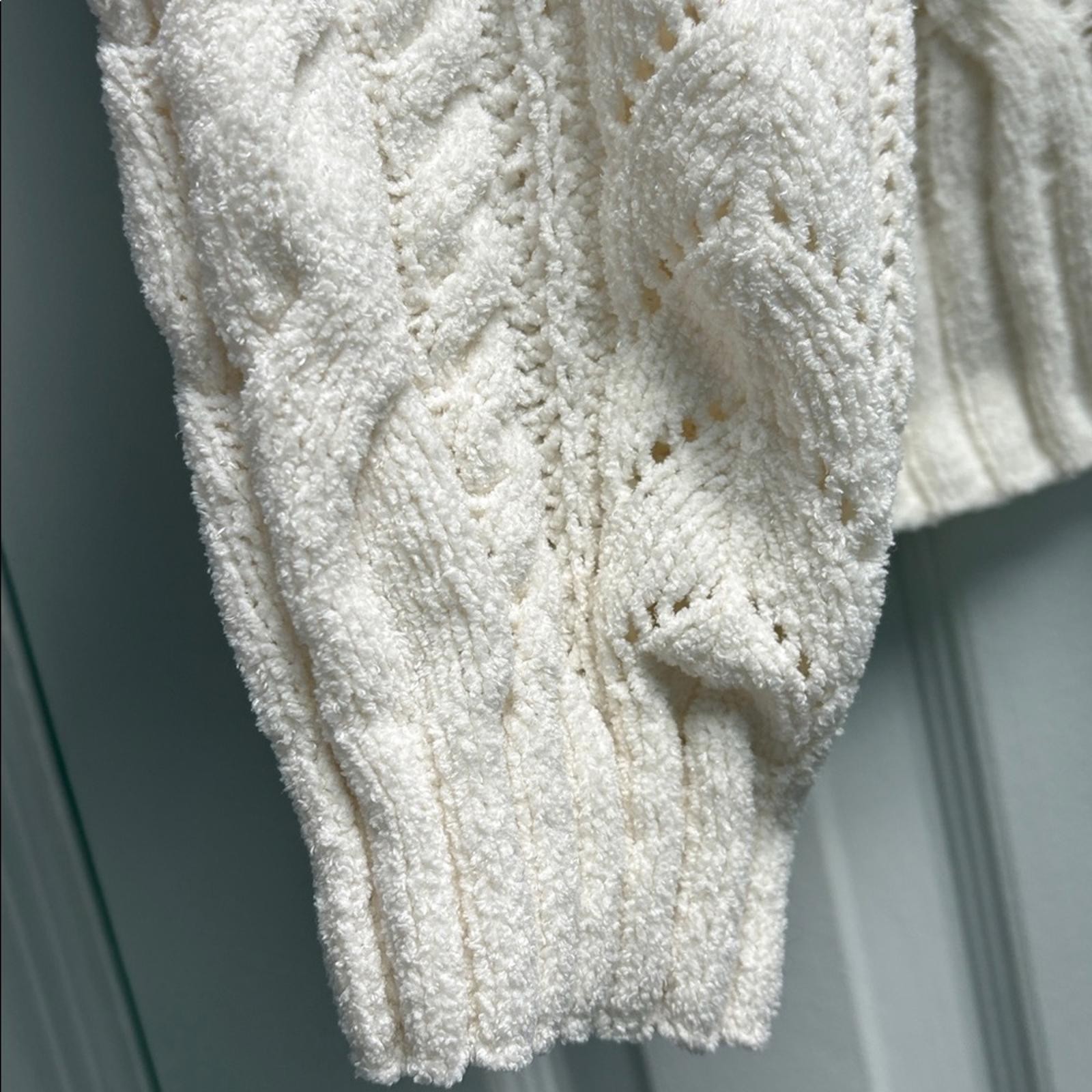 как выглядит Pink Rose Cream Chenille Cable Knit Cropped Soft Comfy Sweater Women s Size XS фото