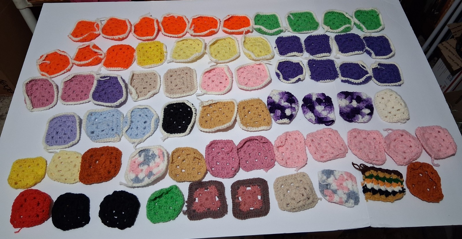 Lot of 60 Crocheted Granny Squares Quilting Afghans 4 IN Yellow Green Red Multi