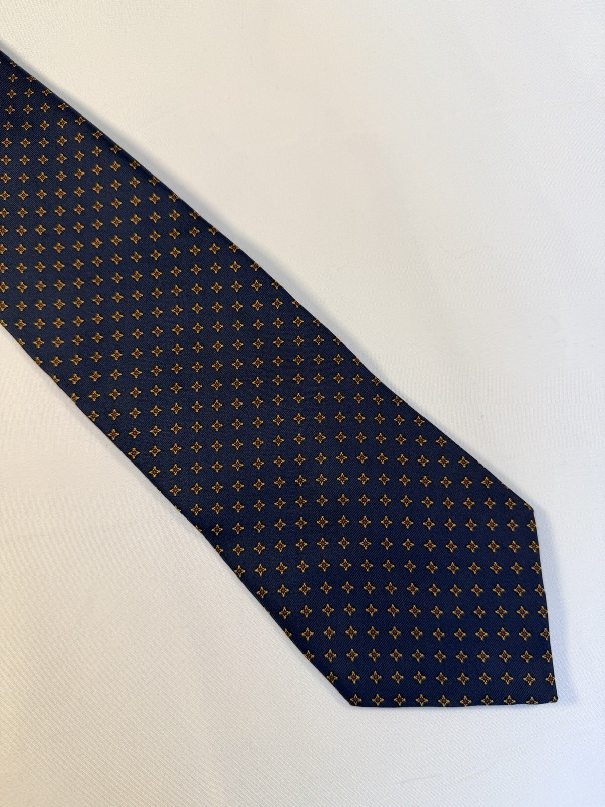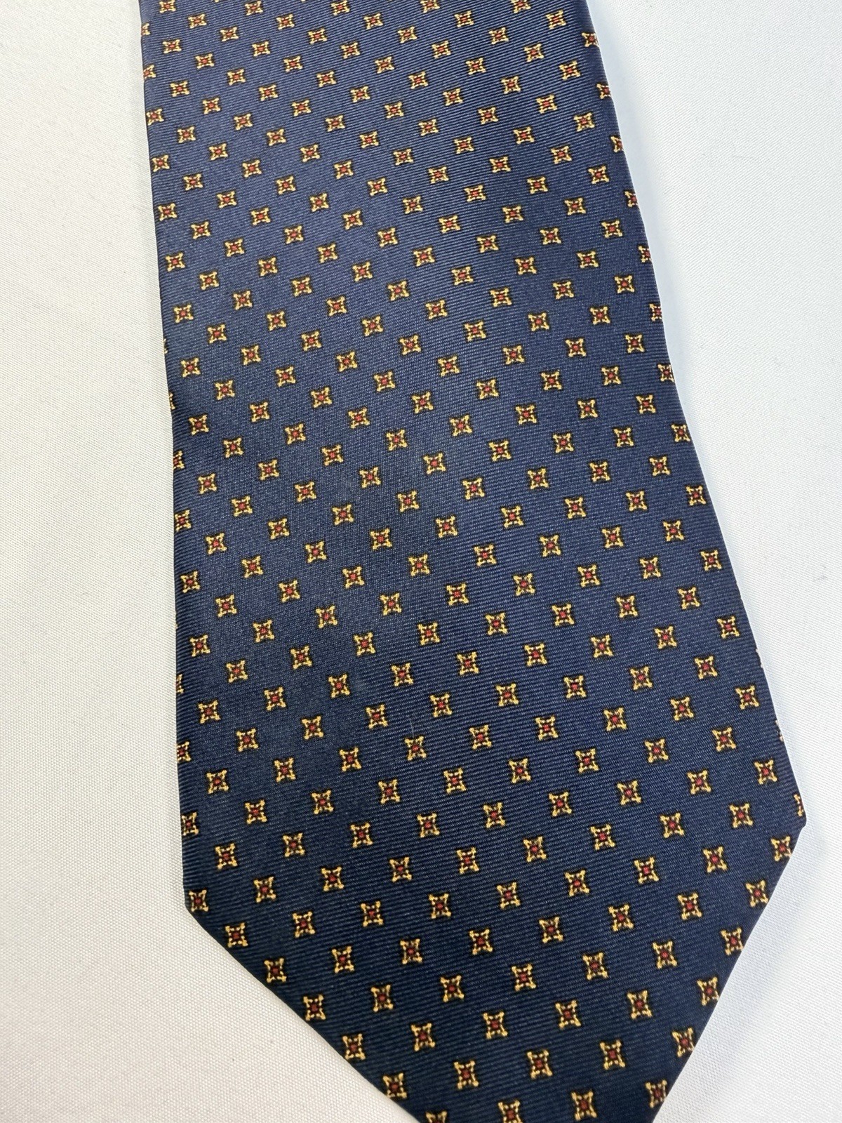 Vintage Brooks Brothers Makers USA Silk Neck Tie Navy Blue Yellow Red 0012