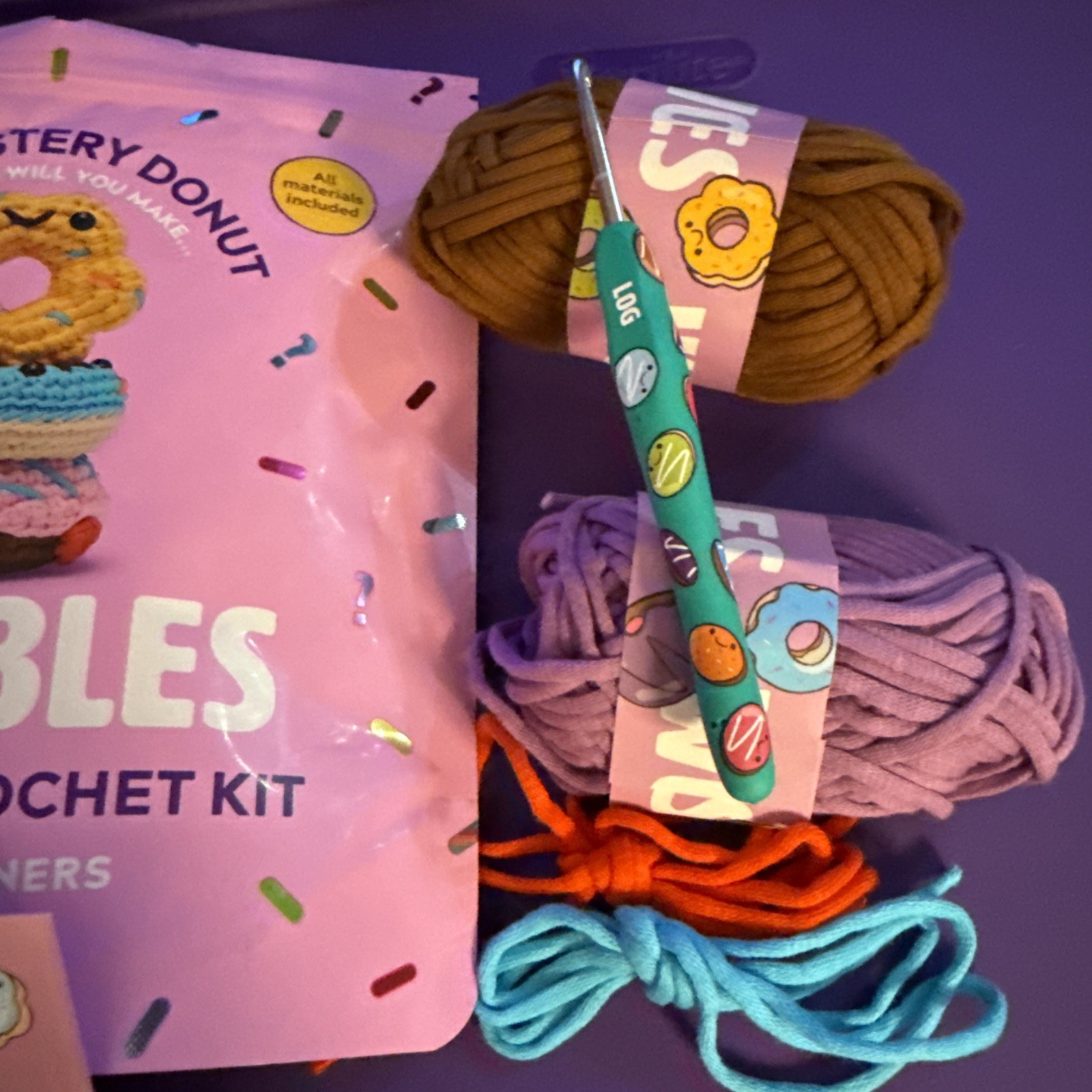 The Woobles Mystery Donut Log Crochet Kit Brown Purple Blue Red W/ Special Hook