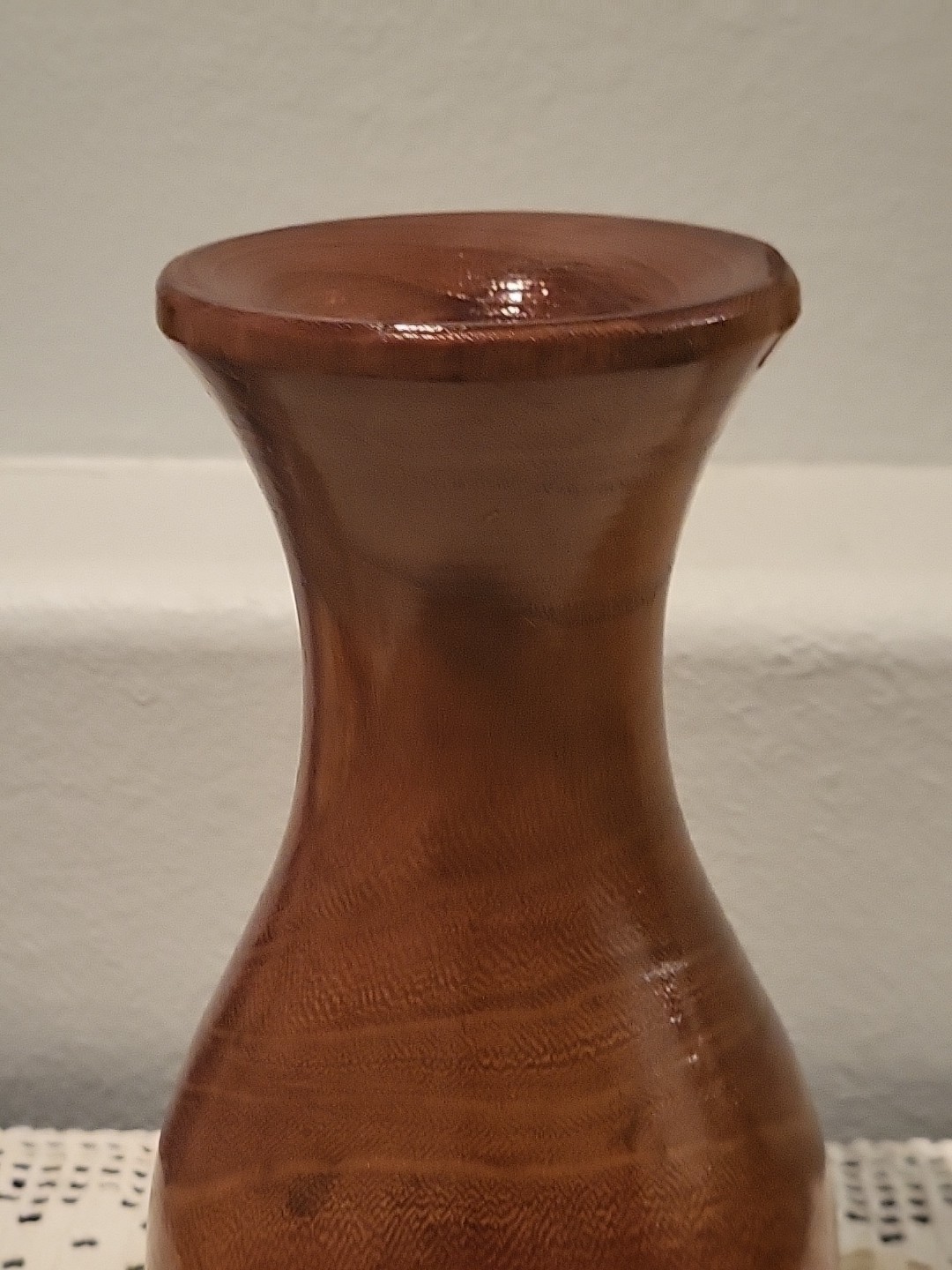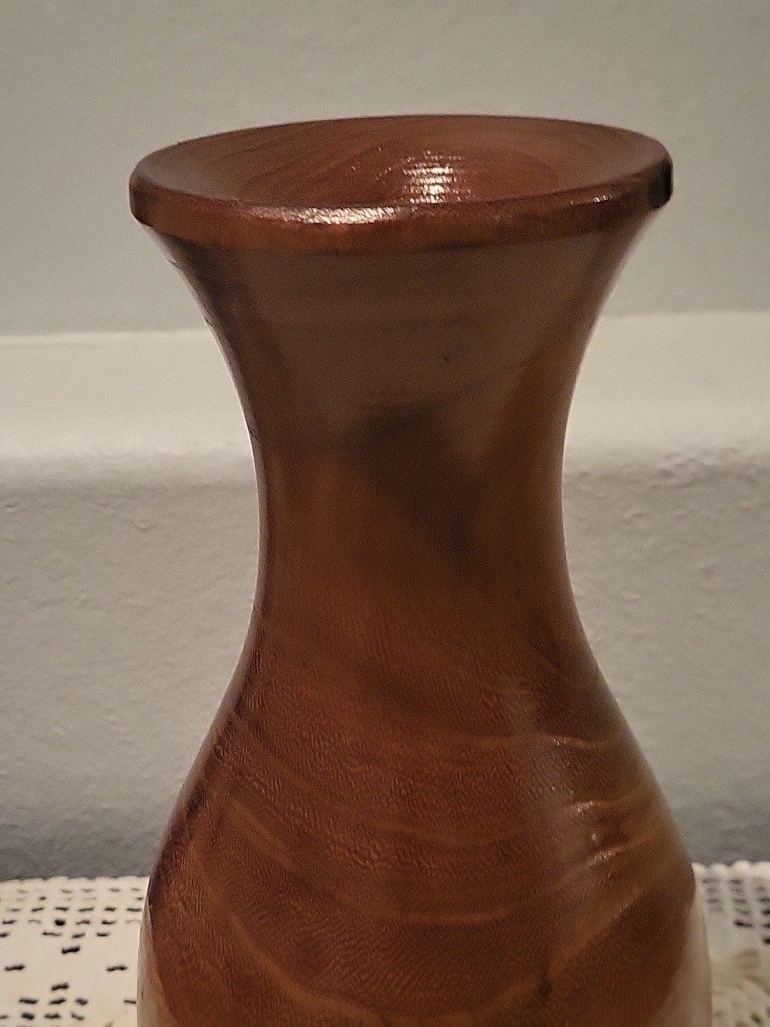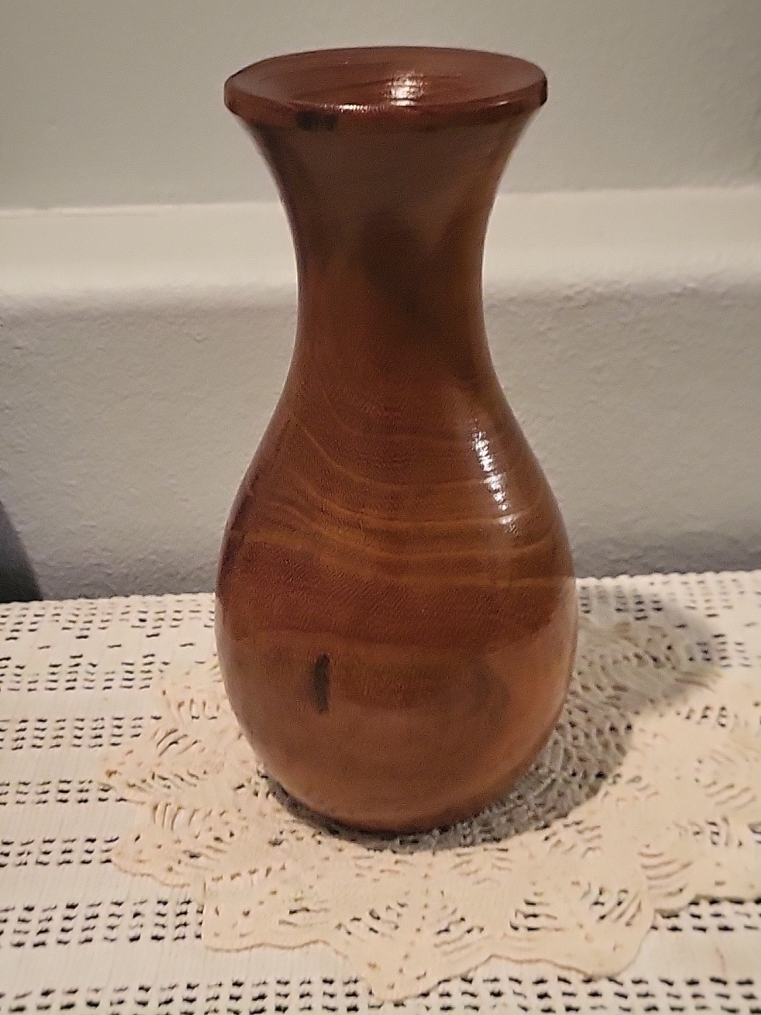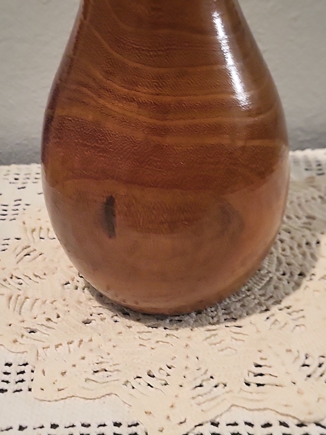 • Vintage Hand Turned Wood Vase Heavy Shows Wooden Grain And Lines 10 Tall -