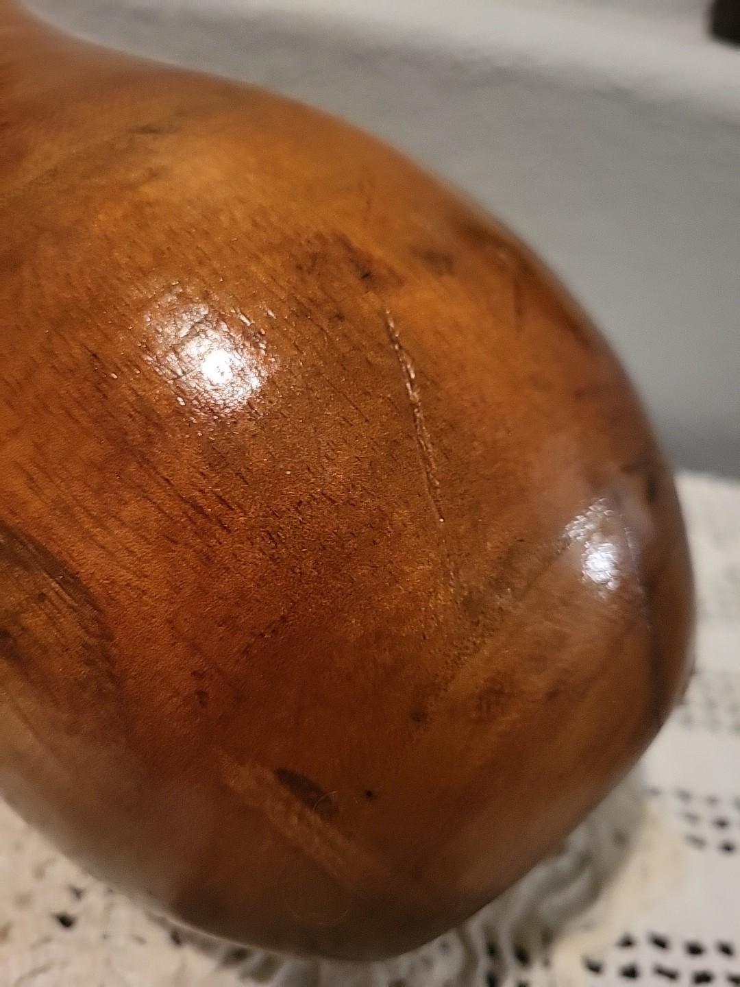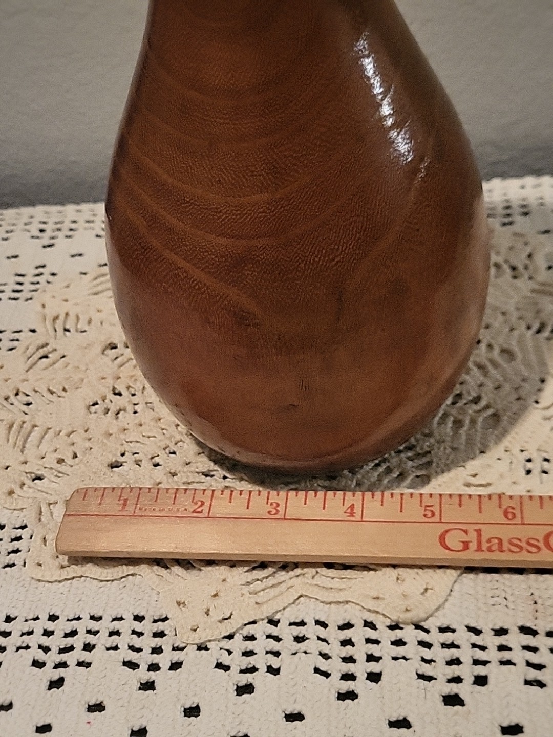 как выглядит Vintage Hand Turned Wood Vase Heavy Shows Wooden Grain And Lines 10 Tall - фото