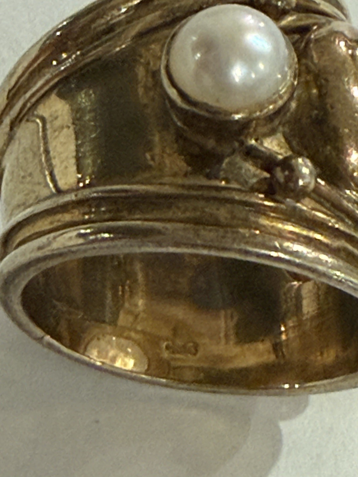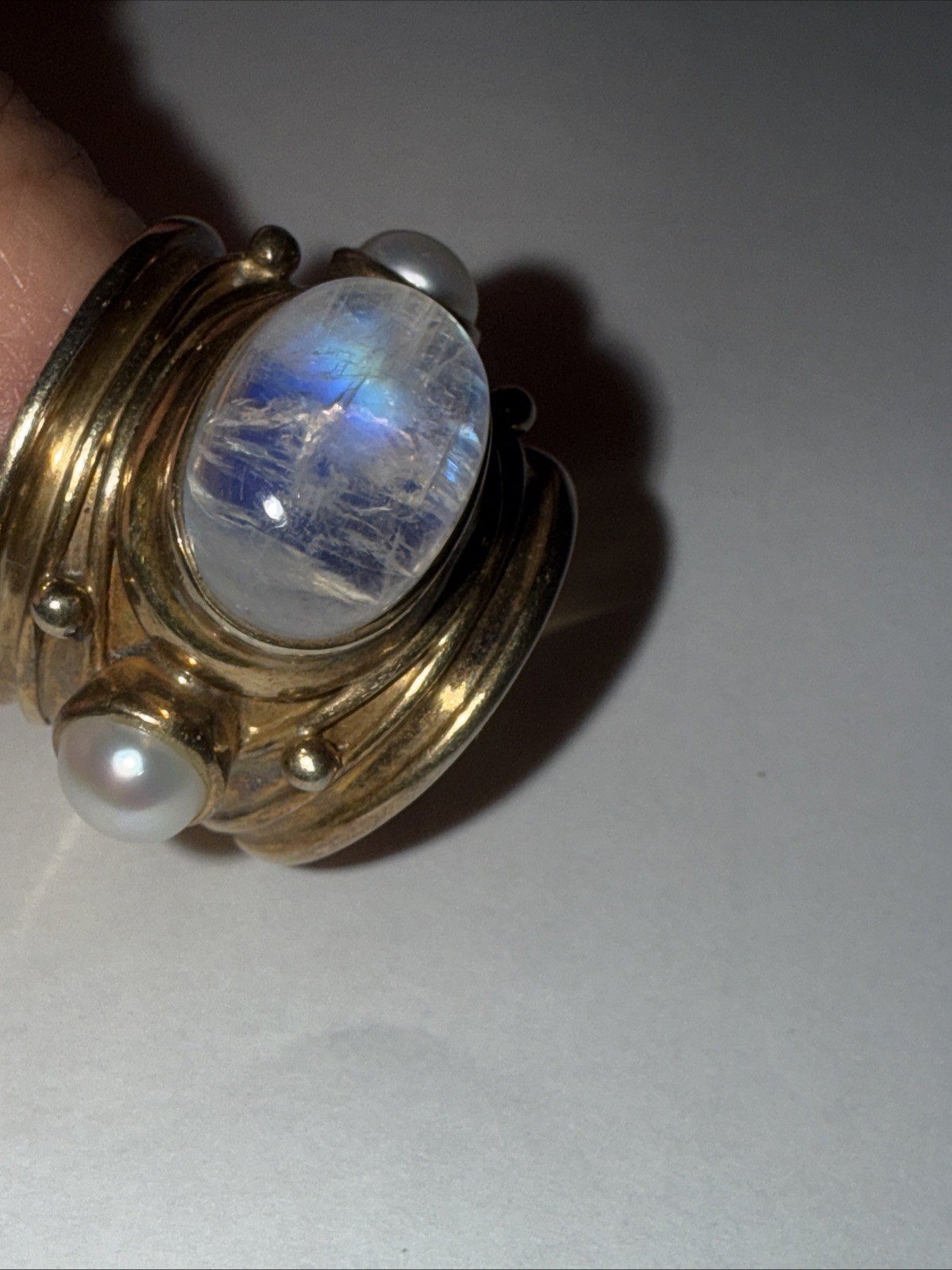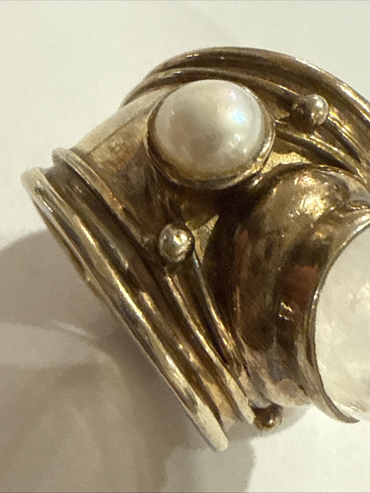 Sterling Silver Gold Wash Wrap Ring Rainbow Moonstone Pearls Sz 8.25-9