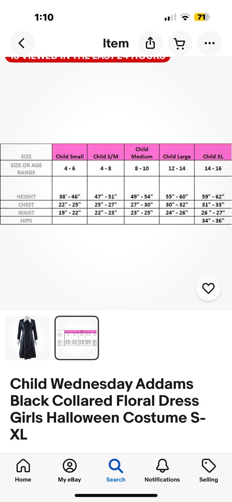 как выглядит Child Wednesday Addams Black Collared Dress Girls Halloween Costume No Tag READ фото