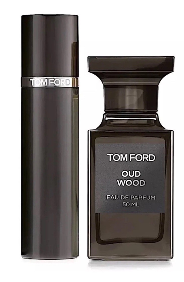 как выглядит Tom Ford Oud Wood Gift Set Eau De Parfum 1.7oz 0.34oz Travel Spray NIB 375 фото