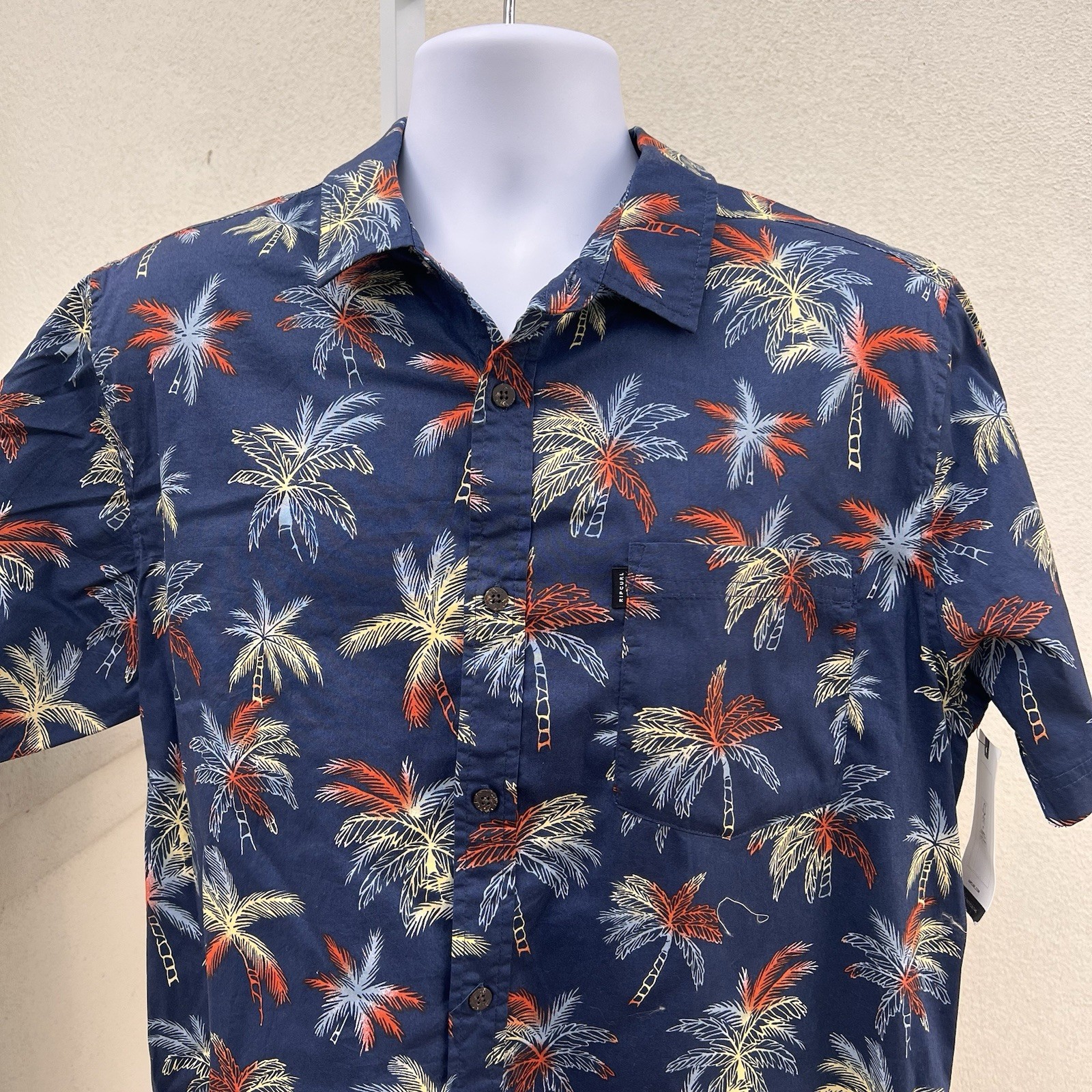 NEW RIP CURL Mens Tropical Shirt Size XL Short Sleeve Button Up Palm Trees NWT