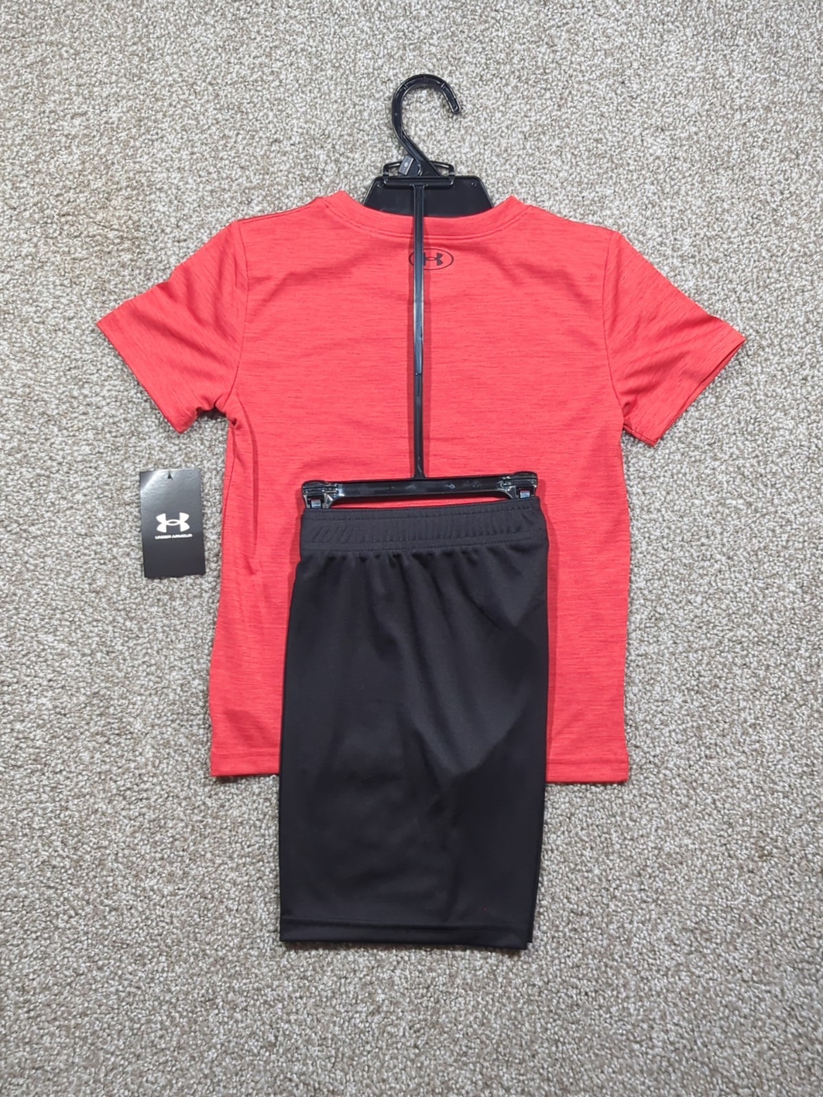 как выглядит Boys 4-7 Under Armour UA Fade Shorts Tech Logo T-shirt Set Red Size 6 фото
