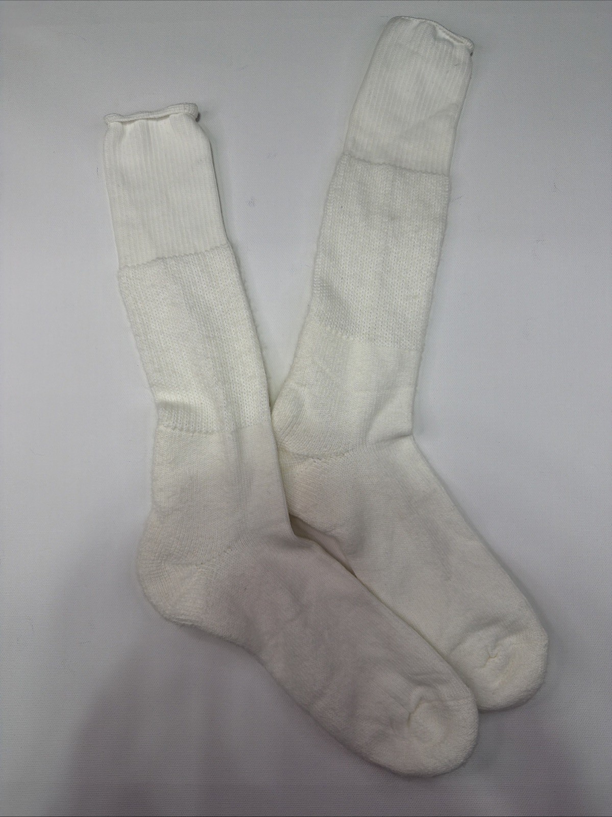 VTG Socks Crew Thick White Orlon Acrylic USA Made Mid Calf 80s 90s Justin Men's
