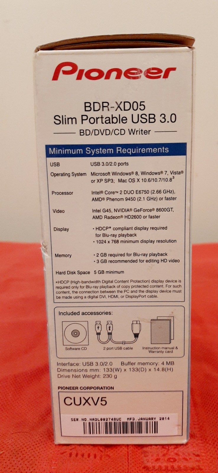 Open box -Never Used-PIONEER BDR-XD05 Slim External Blu Ray Recorder/Burner-USB3