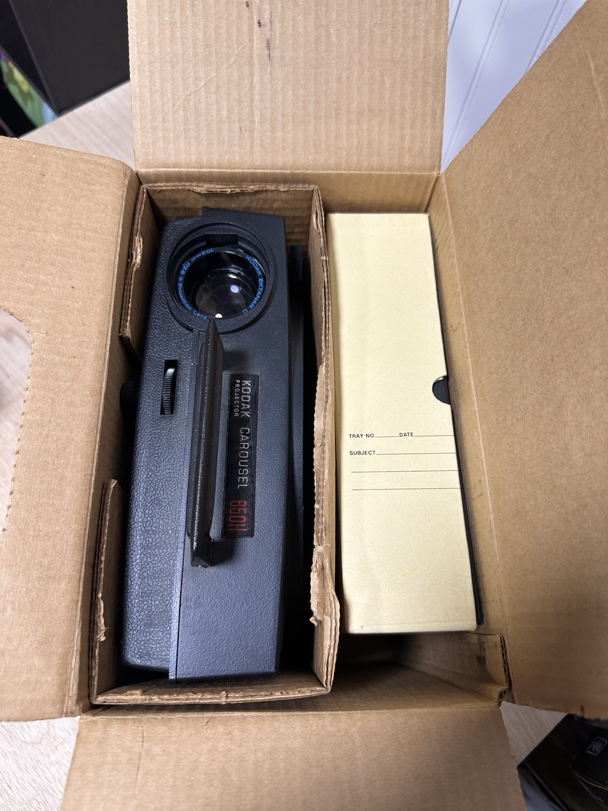 Kodak Carousel 650H Slide Projector w/Remote, in Box Tested Working With Extras
