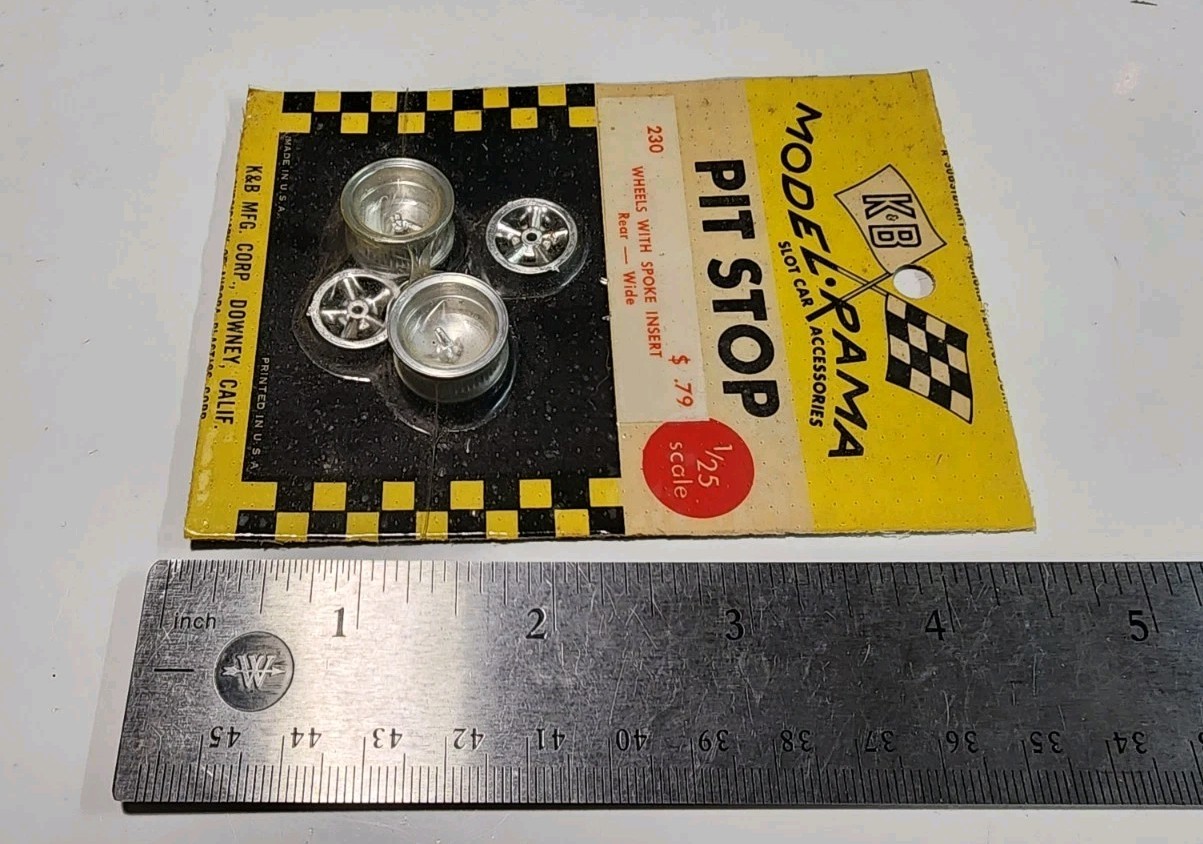 как выглядит K B Aurora Model-Rama Slot Car Acc. Pit Stop 1/25 Rear Wheels Wide w/Insert фото