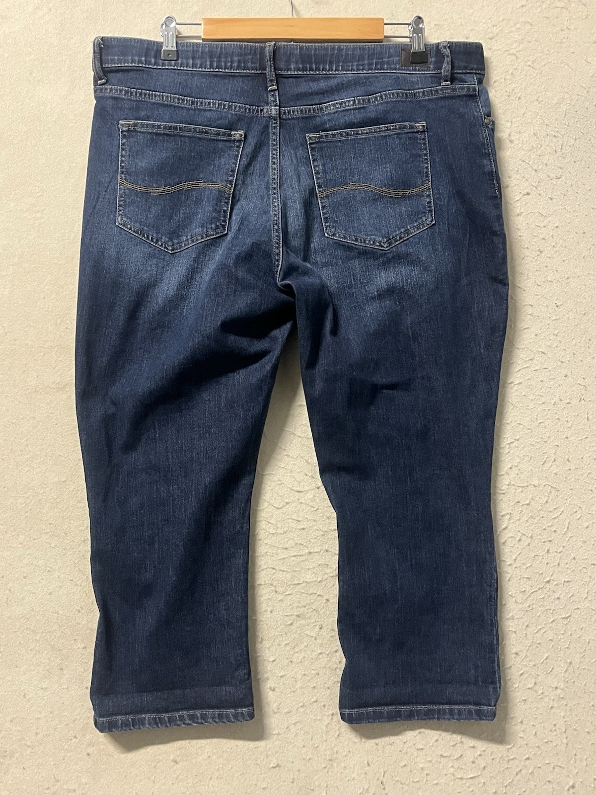 Women Jeans Lee 18M Blue Dark Capri Cropped Stretch Denim Plus Size Fit