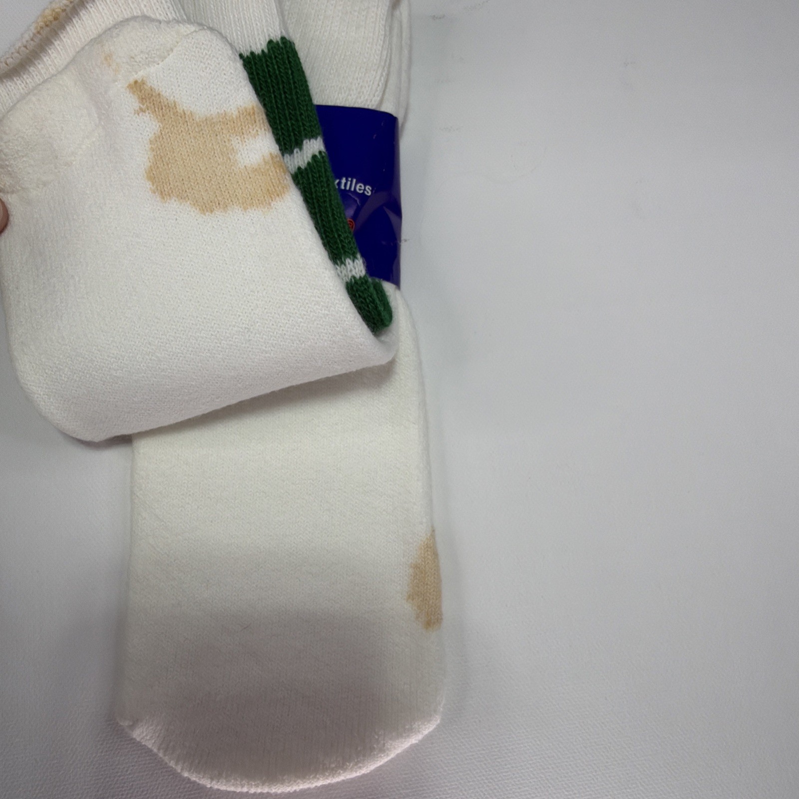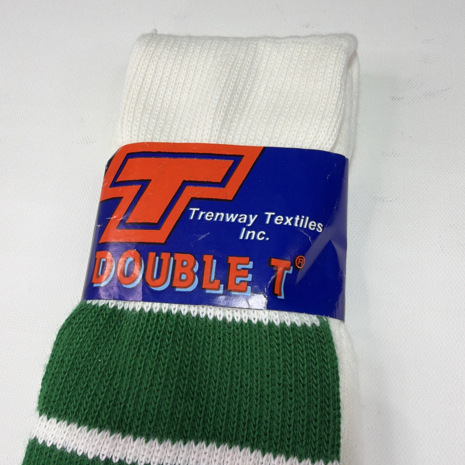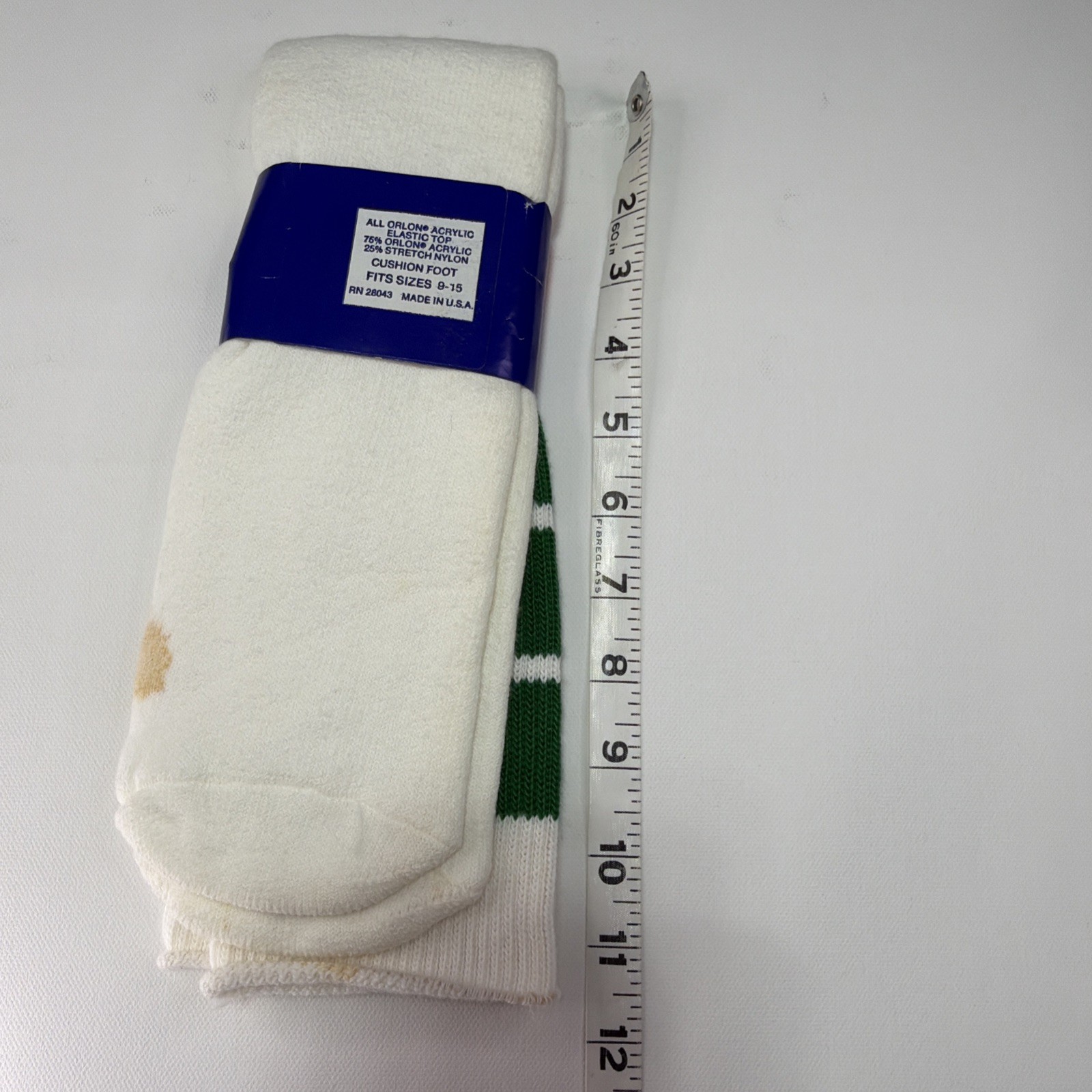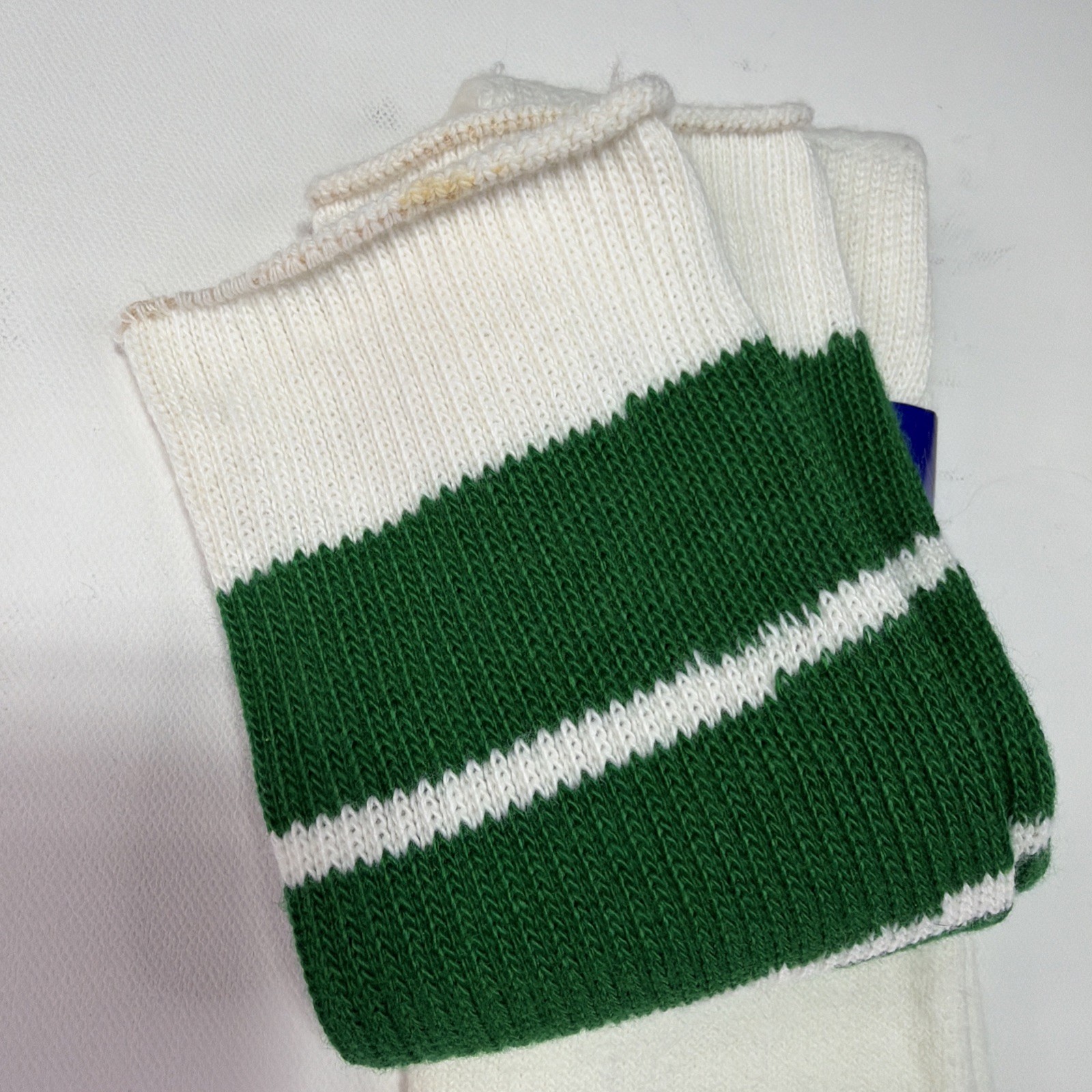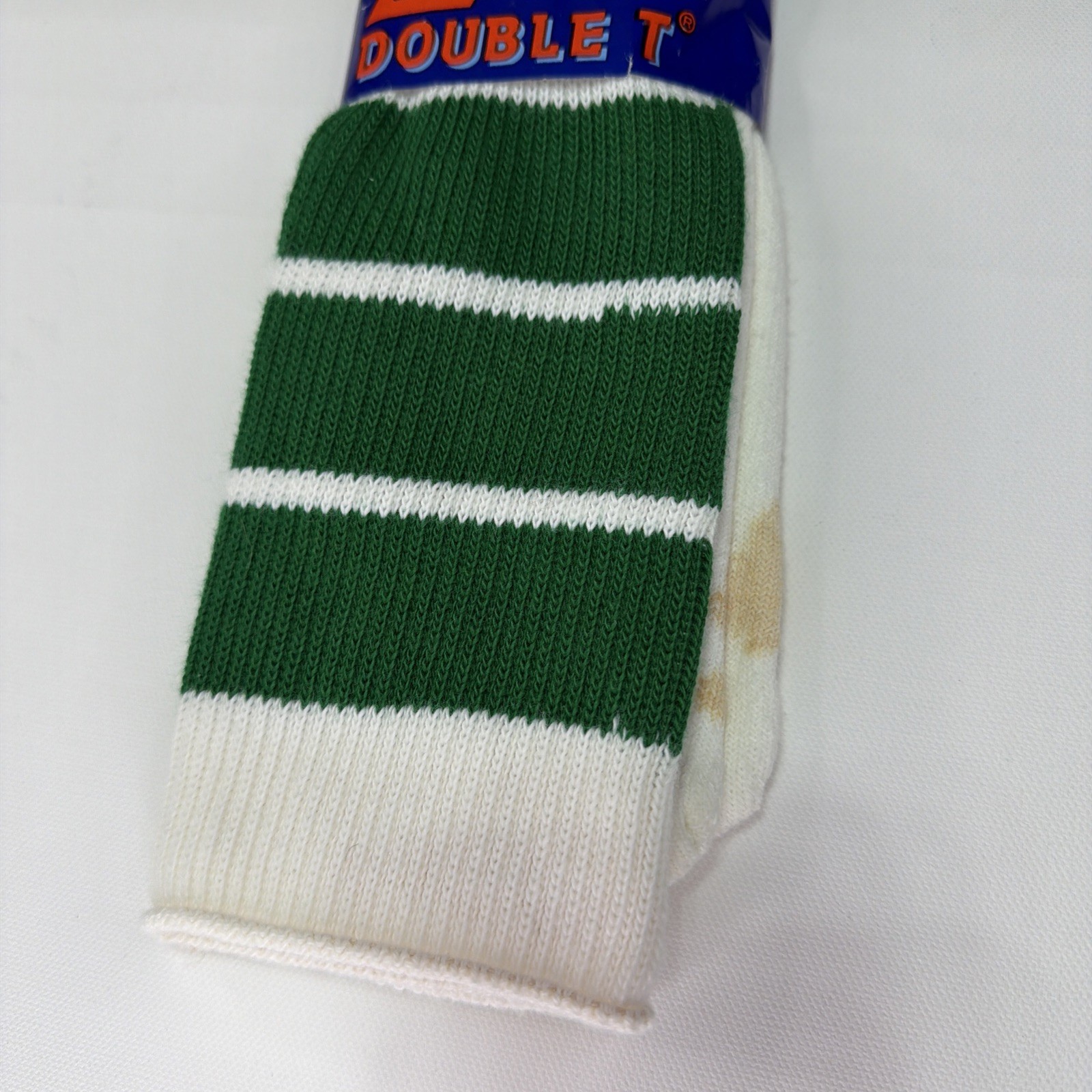 как выглядит VTG White Green Tube Socks Acrylic 9-15 USA Made 22 90s Double T 1980s Stains фото