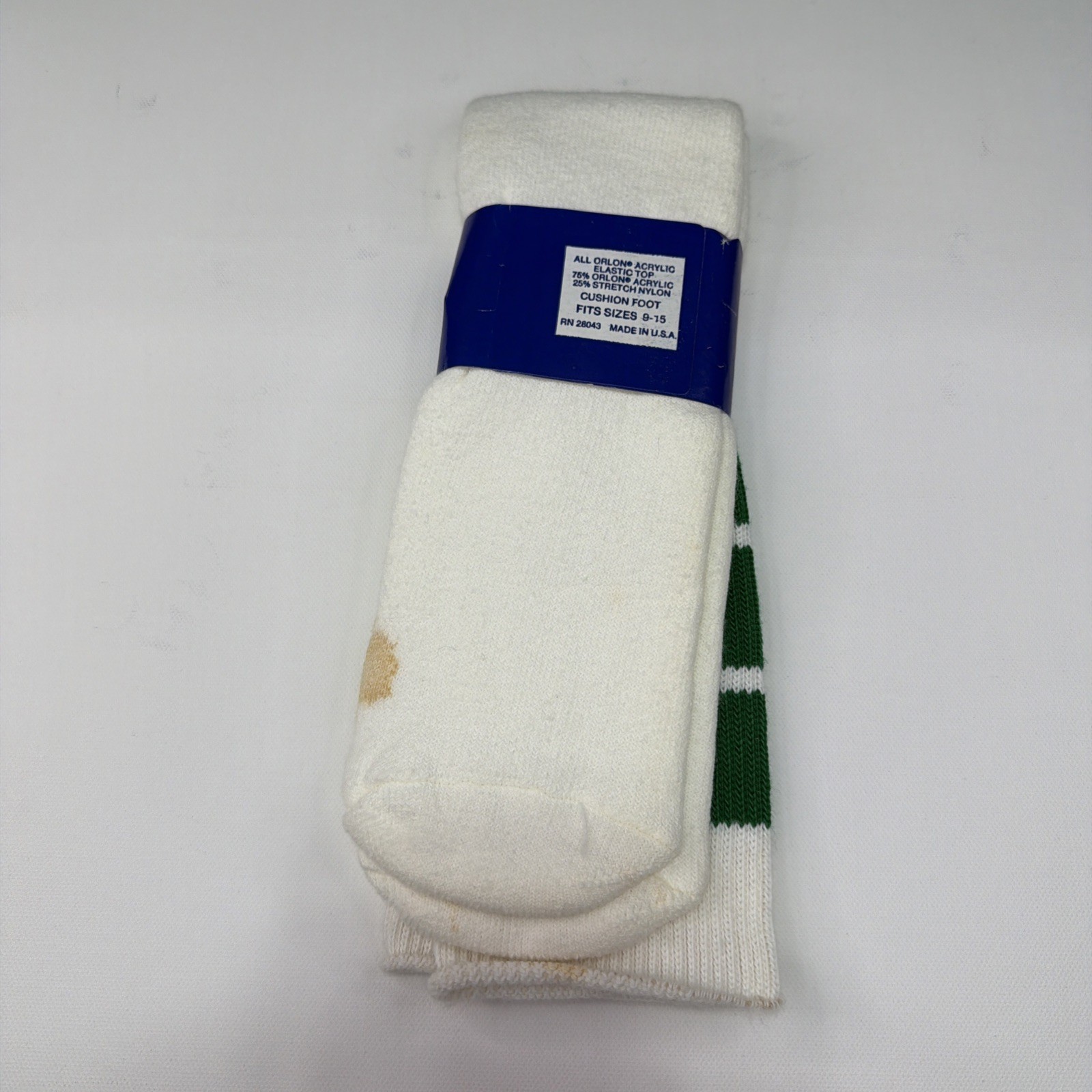 VTG White Green Tube Socks Acrylic 9-15 USA Made 22 90s Double T 1980s Stains