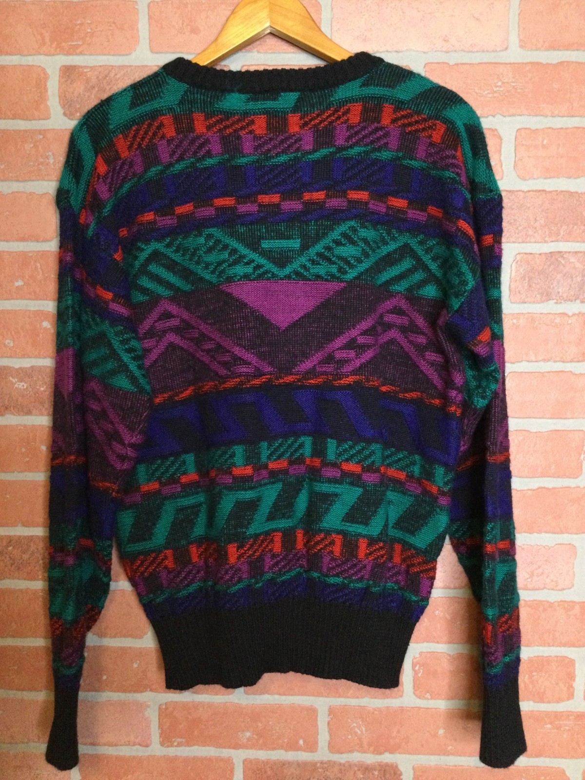 как выглядит Vintage Men Colorful Geometric Sweater Size M Wool Blend Eclectic Grandpa Grunge фото