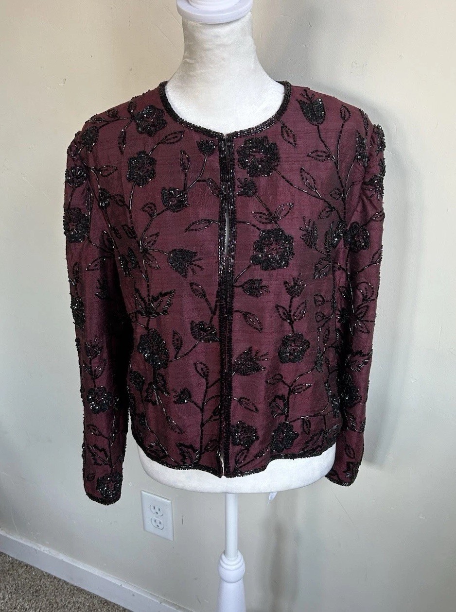 как выглядит Vintage Scala Silk Beaded Sequin Jacket Petite Evening Formal Black Tie PS фото